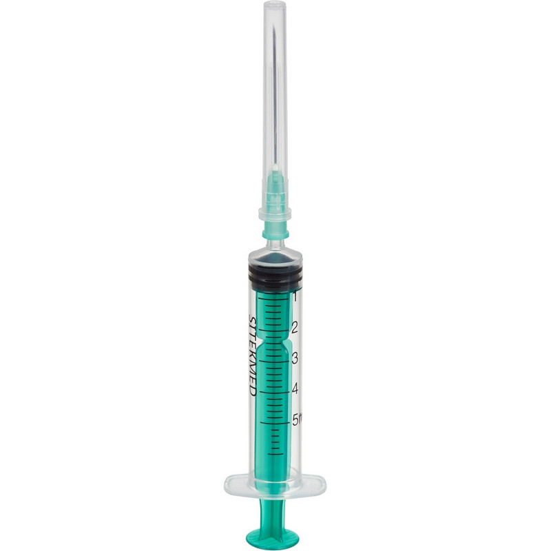 Шприц трехкомпонентный Sitekmed 5 мл 21G (0.8х40 мм, 100 штук в упаковке). Предназначен для лекарственных инъекций. Шприц индивидуально упакован в блистер, игла лежит рядом. Шприц имеет плавный ход поршня за счёт резиновой манжеты на поршне. Стальная игла тройной степени заточки с максимальным проникновением в кожу имеет силиконовое защитное покрытие и снижает болевые ощущения при уколе. На прозрачной герметичной колбе нанесена шкала несмываемой краской. Модифицированный упор для пальцев, имеющий выраженную ребристость, позволяет надежно удерживать шприц во время инъекции. Стерильная блистерная упаковка из нетоксичного материала обеспечивает видимость шприца до вскрытия упаковки и свидетельствует о ее целостности. Разъем luer-slip исключает размыкание шприц-игла. Особая форма резинового уплотнителя, благодаря идеальному положению на дне цилиндра, гарантирует введение полного объема лекарства. Изумрудный пластиковый поршень. Стерильно, апирогенно, нетоксично, одноразового применения. Стерилизация - этиленоксид. На корпусе шприца несмываемая шкала с ценой деления 1 мл. Тип наконечника: Luer Slip. Срок годности: 5 лет.