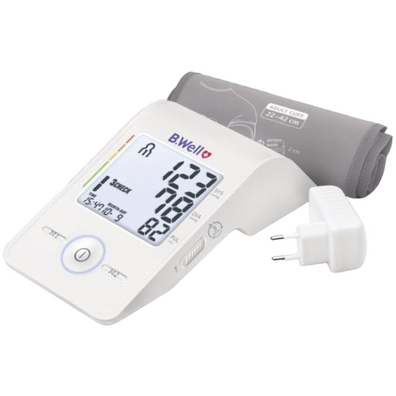 Автоматический тонометр B. Well MED-55ad - это современный прибор с уникальными технологиями. Тонометр MED-55ad обеспечивает усовершенствованную точность благодаря технологии 3check. В режиме 3check прибор автоматически проводит три последовательных измерения и анализирует полученные результаты по специальному алгоритму. Поскольку артериальное давление постоянно колеблется, результат, полученный подобным способом, более надежен, чем результат, полученный однократным измерением. Вы можете выбрать удобный для себя режим измерения: 3check c тройным измерением и интеллектуальным анализом или режим однократного измерения. С MED-55ad Вы сразу будете знать, к какому уровню относится измеренный результат. Цветная подсветка дисплея - зеленым, желтым или красным цветом - сигнализирует о нормальном, повышенном или высоком давлении. Инновационная технология Intellect Active позволит провести измерение точно, быстро и бережно. Тонометр-автомат MED-55ad проводит измерение на этапе нагнетания воздуха в манжету, подстраивается под каждого пользователя, определяя персональный уровень накачки манжеты. Тонометр-автомат MED-55ad работает от обычного адаптера micro USB или от 4 стандартных батареек ААА. MED-55ad имеет память для двух пользователей по 60 измерений с датой и временем. Это два "Дневника измерений", которые всегда под рукой. Кроме того, MED-55ad имеет "Гостевой режим измерения": в этом режиме тонометр не сохраняет в памяти результат измерения. Вы можете дать другому лицу измерить давление MED-55ad, и при этом в памяти останутся только Ваши результаты измерений. Специальная функция тонометра MED-55ad - контроль правильной фиксации манжеты. Точные показания зависят не только от надежного тонометра, но и от корректной фиксации манжеты. Тонометр B. Well подскажет, что манжета зафиксирована правильно, или оповестит об ошибке. Манжета B. Well имеет анатомическую конусную форму для плотного прилегания и точного измерения. Манжету легко надеть самостоятельно. Универсальный размер манжеты M-L для обхвата руки 22-42 см подходит для людей разной комплекции. Прибор имеет поверку. Свидетельство о поверке Вы можете найти на сайте производителя по серийному номеру (номер указан на упаковке).