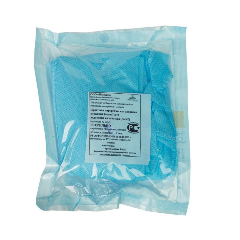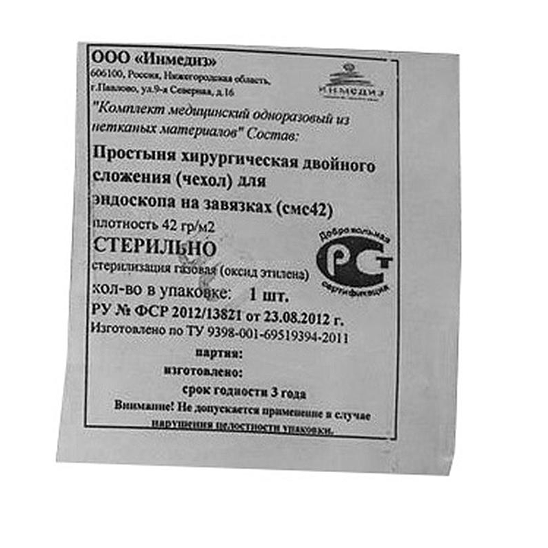 Стерильный чехол для шнура и трубок изготовлен из трехслойного нетканого материала спанбонд-мелтблаун-спанбонд плотностью 42 г/м2.Размер - 250х15 см. Способ крепления - на завязках двух сторон.