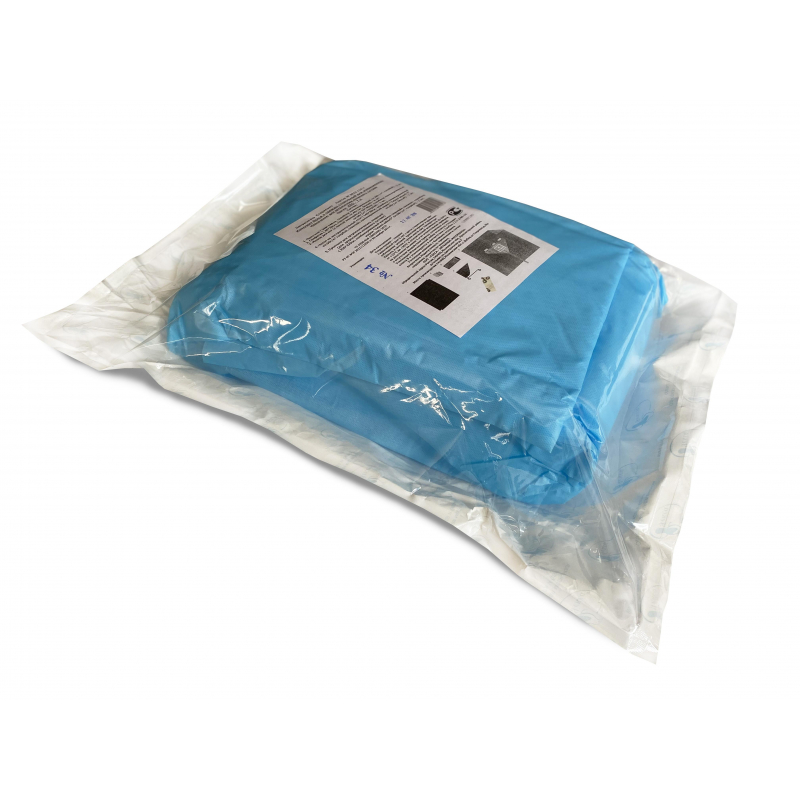 Комплект белья и одежды стерильный для операционных предназначен для артроскопии коленного сустава. Простыня 240х140 см. Цельнокроеная. Изготовлена из непрозрачного влагонепроницаемого ламинированного полипропиленового гидрофобного нетканого материала спанбонд плотностью 60 г/м.кв. Салфетка 40х30 см. Цельнокроеная. Изготовлена из впитывающего воздухопроницаемого нетканого материала спанлейс, плотностью 40/г/м.кв. (содержание вискозных волокон - 70%). Мешок для ног (бахил высокий) 55х40 см. Прямоугольной формы с 2-мя боковыми наружными безниточными (сварными) швами. Изготовлен из влагонепроницаемого ламинированного полипропиленового гидрофобного нетканого материала спанбонд плотность 50 г/м.кв. Чехол на инструментальный стол (стол Мейо) 140х80 см с укрепленной впитывающей зоной 75х65 см. Изготовлен из влагонепроницаемого ламинированного полипропиленового гидрофобного нетканого материала спанбонд плотностью 50 г/м.кв.. Впитывающая зона - из ламинированного спанлейса (содержание вискозных волокон 70%) плотностью. 55 г/м.кв. Швы наружные, выполнены ультразвуковой сваркой без применения ниток. Простыня для артроскопических операций (для артроскопии коленного сустава - с двумя эластичными манжетами, мешком для сбора жидкости с отводом и встроенным держателем для трубок), размер 320х230 см. В центре простыни эластичная манжета с отверстием диаметром 8 см. Над манжетой смонтирован карман треугольной формы для сбора жидкости с отводом по краю кармана. Размер кармана: ширина 60 см, высота 86,5 см, длина отвода 115 см. Внутренняя часть кармана (прилегающая к простыне) с П-образным вырезом, в верхнюю часть внутренней стороны встроены 2 гибких держателя для трубок размером 12х10 см. В каждом держателе по 2 отверстия диаметром 2 см. Во внешнюю часть кармана встроены: эластичная манжета диаметром 8 см и гибкий фиксатор. Простыня изготовлена из комбинированного трехслойного впитывающего влагонепроницаемого материала Tutami adsorb плотностью 90 г/м.кв. Верхний слой - из нетканого впитывающего паро-воздухопроницаемого нетканого материала (содержание вискозных волокон 70, нижний слой (слой комфорта) - из паро-воздухопроницаемого нетканого материала. Карман и отвод изготовлены из влагонепроницаемого ламинированного полипропиленового гирофобного нетканого материала спанбонд плотностью 50 г/м.кв. (спанбонд плотностью 25 г/м.кв., ламинат 15 г/м.кв.). На простыне нанесены пиктограммы, облегчающие быструю и правильную раскладку. Комплект завернут в одну из простыней 240х140 и упакован в комбинированный пакет из многослойной полимерной пленки и газопроницаемой бумаги. Пакет легко открывается без помощи ножниц. На каждом пакете - индикатор стерильности. Срок годности 5 лет. Комплектация: 1. Простыня 240х140 см - 2 штуки. 2. Салфетка 40х30 см - 2 штуки. 3. Мешок для ног (бахил высокий) 55х40 см - 1 пара. 4. Чехол на инструментальный стол (стол Мейо) 140х80 см с укрепленной впитывающей зоной 75х65 см - 1 штука. 5. Простыня для артроскопических операций 320х230 см - 1 штука.