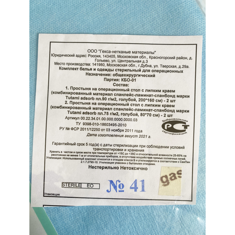 Комплект одноразового медицинского белья, общехирургический, для длительных операций и операций с большим количеством отделяемых жидкостей. Простыни для ограничения операционного поля из прочного влагонепроницаемого материала с высокой впитывающей способностью. Комплектация: 1. Простыня для ограничения операционного поля (с липким краем) 200х160 см, плотностью 90 г/м.кв. (впитывание 250 мл/м.кв.) - 2 штуки. 2. Простыня для ограничения операционного поля (с липким краем) 80х70 см, плотностью 75 г/м.кв. (впитывание 250 мл/м.кв.) - 2 штуки.