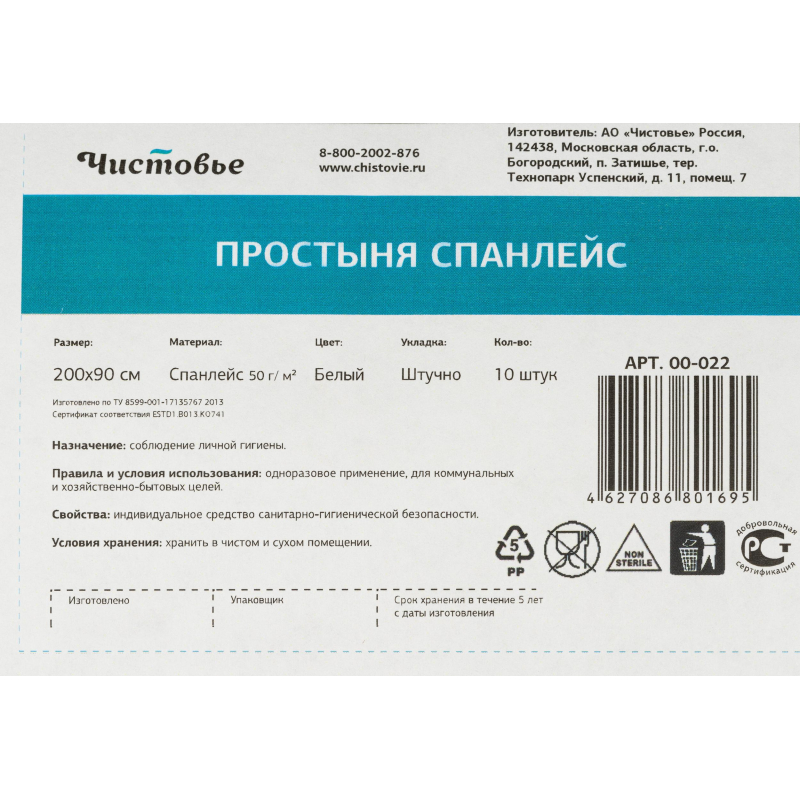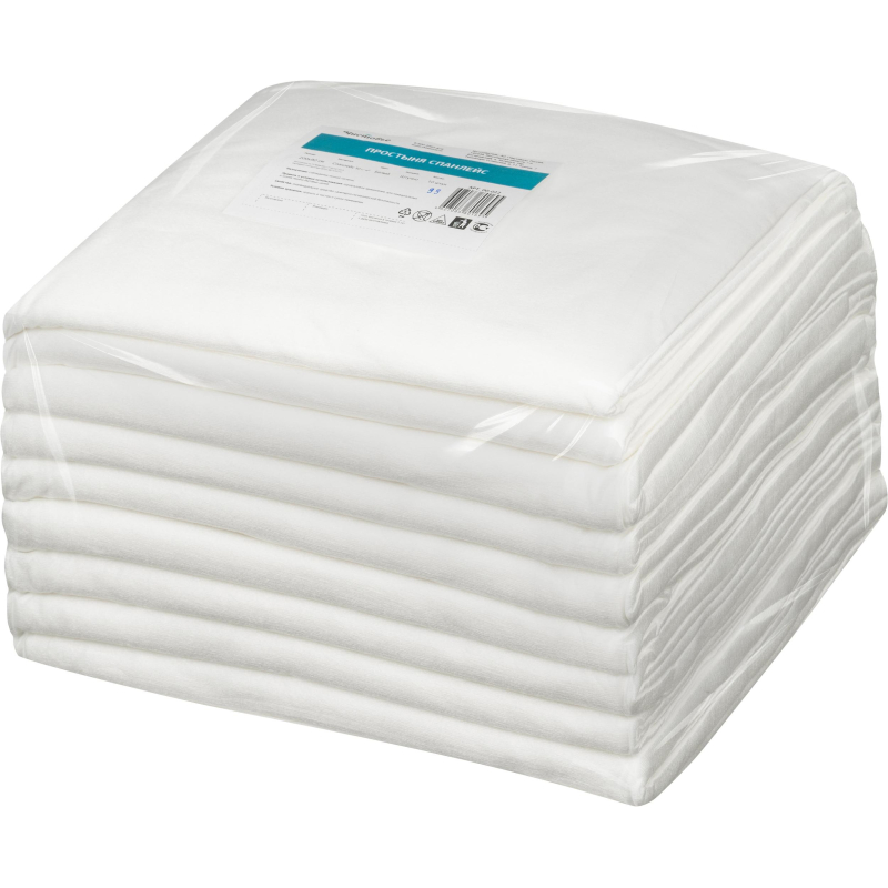 Простыня гигиеническая, нестерильная, изготовлена из мягкого гипоаллергенного водовпитывающего материала - спанлейса, 10 штук в упаковке, сложены поштучно.
