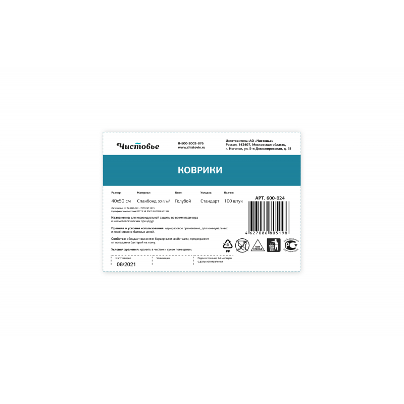 Салфетка гигиеническая, нестерильная, изготовлена из гипоаллергенного материала спандбонд, плотностью 30 г/м.кв. Количество в упаковке - 100 штук. Цвет голубой.