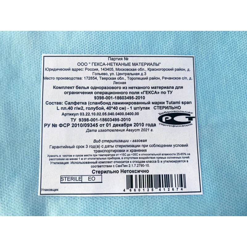 Стерильная одноразовая салфетка из нетканого материала спанбонд с ламинацией в индивидуальной упаковке. Предназначена для массажных салонов, для медицинских центров, для салонов красоты, для спа-салонов, для студий маникюра и педикюра. Материал: спанбонд. Ламинированная. Плотность: 40 г/м.кв. Страна производства: Россия.