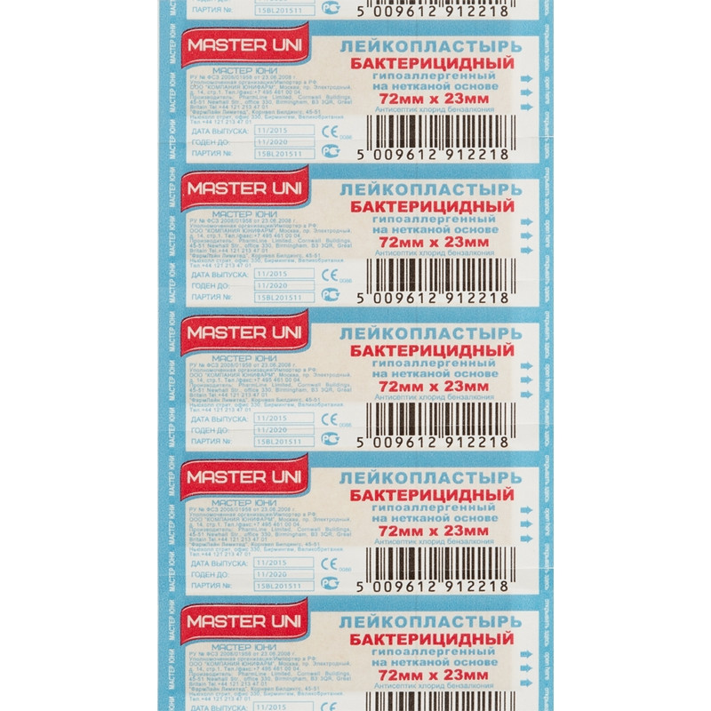 Пластырь бактерицидный Master Uni<br />Применяется для защиты бытовых повреждений кожи: порезов, мозолей, небольших ран и ожогов<br /> Лента из 10 штук пластырей