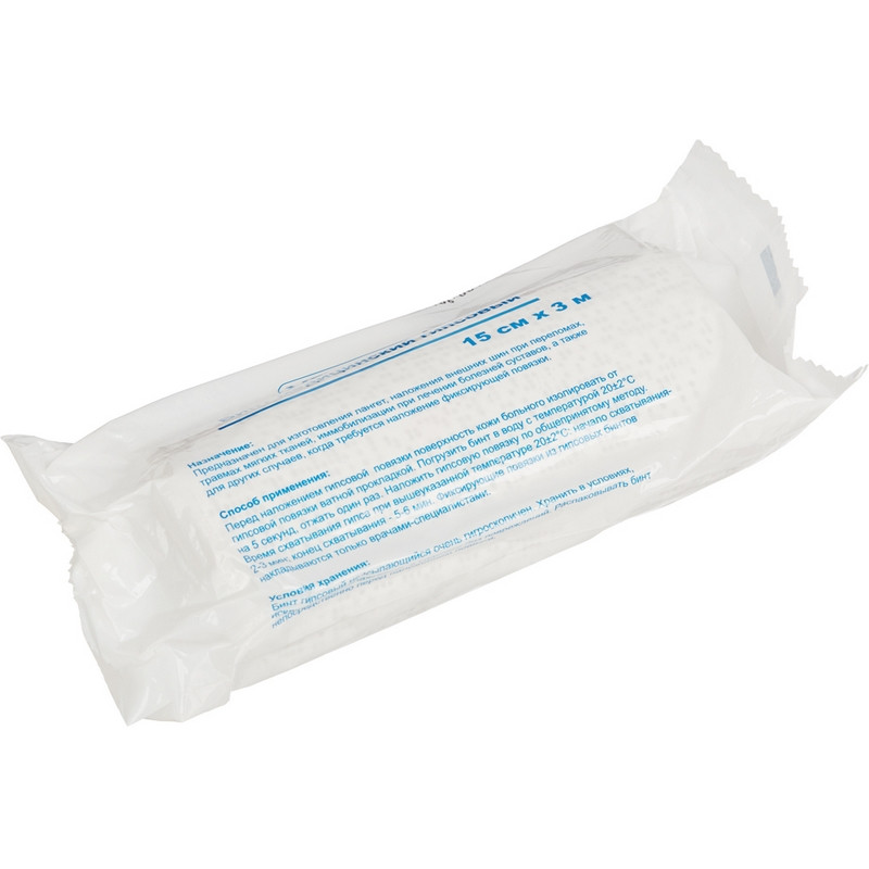 Бинт медицинский гипсовый Меридиан. Хлопковые марлевые повязки пропитывают сухим сульфатом кальция и клеевым составом. Повязки представляют собой единый рулон марлевой выбеленной ткани, без стыков и разрывов. Изготовлен из высококачественных сортов гипса, что исключает аллергические реакции кожи; хорошо пропускают рентгеновское излучение, позволяя получать снимки высокого качества. Предназначен для изготовления лангет, наложения внешних шин при переломах, травмах мягких тканей, иммобилизации при лечении болезней суставов и т.д. Время начала схватывания: 2-3 минуты. Конец схватывания: 5-6 минут. Размерный ряд: 10 см х 3 м, 15 см х 3 м, 20 см х 3 м. Упаковка: полиэтилен. Срок хранения: 3 года с даты выпуска.