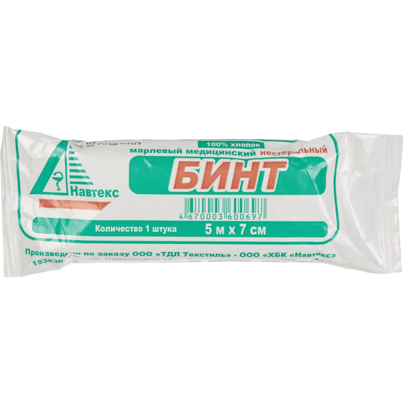 Бинт в индивидуальной упаковке марлевый медицинский нестерильный предназначен для фиксации, наложения, изготовления операционно-перевязочных средств. Материал - медицинская отбеленная марля.
