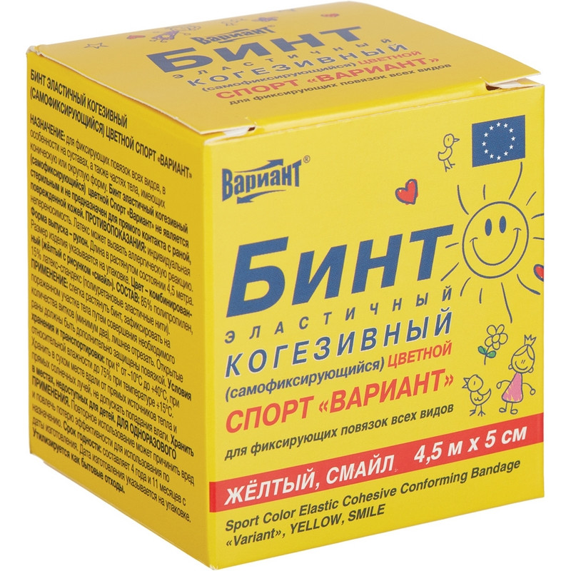 Самофиксирующиеся бинты 'ВАРИАНТ' эластичны (в зависимости от вида бинта разная растяжимость), тем самым обеспечивается мягкое давление на рану, что хорошо фиксирует повязку, в то же время не доставляет дискомфорта из-за избыточного давления. Свойства: - современный перевязочный материал с длительным периодом фиксации - самофиксируется: каждый последующий слой цепляется за предыдущий - эластичен, тем самым обеспечивает мягкое давление на рану и надежную фиксацию повязки - различается по степени растяжимости, цвету и наличию/отсутствию натурального латекса в составе (для аллергиков) - срок годности 4 года 11 месяцев. Преимущества: - самофиксирующийся бинт не сыплется (т.к. не имеет резанного края) - не требует завязывания (соответственно, расход такого бинта на одну перевязку гораздо ниже + существенно сокращается время, необходимое для перевязки) - не приклеивается к коже, волосам и одежде.