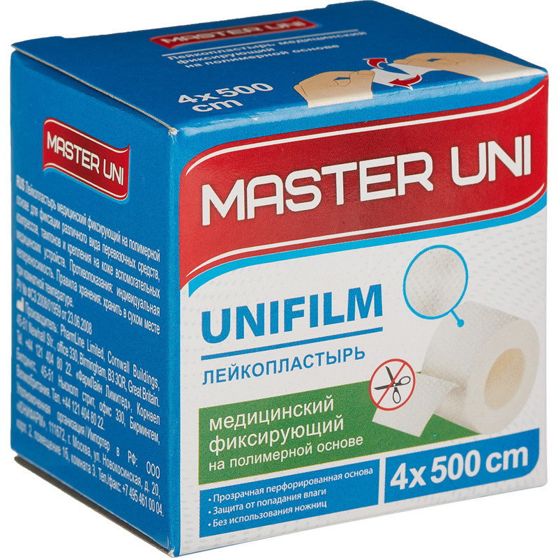 Пластырь медицинский в катушках Master Uni UNIFILM<br />Применяется для фиксации защитных повязок, тампонов, зондов, катетеров :<br />Основа - прозрачный перфорированный полиэтилен<br />