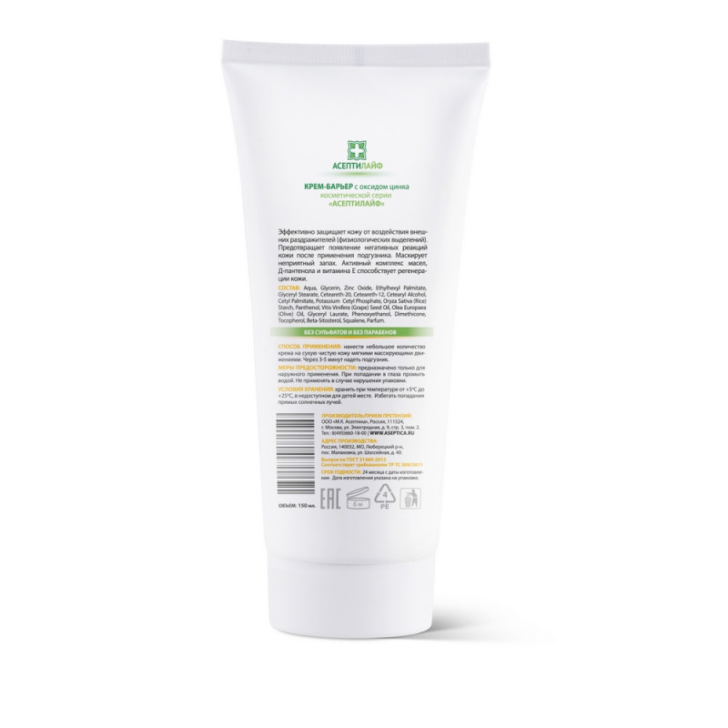 Эффективно защищает кожу от воздействия внешних раздражителей (физиологических выделений). Предотвращает появление негативных реакций кожи после применения подгузника. Маскирует неприятный запах. Активный комплекс компонентов способствует регенерации кожи. Состав: Aqua, Glycerin, Zinc Oxide, Ethylhexyl Palmitate, Glyceryl Stearate, Ceteareth-20, Ceteareth-12, Cetearyl Alcohol, Cetyl Palmitate, Potassium Cetyl Phosphate, Oryza Sativa (Rice) Starch, Panthenol, Vitis Vinifera (Grape) Seed Oil, Olea Europaea (Olive) Oil, Glyceryl Laurate, Phenoxyethanol, Dimethicone, Tocopherol, Beta-Sitosterol, Squalene, Parfum. Форма выпуска: туба - 150 мл. Способ применения: нанести небольшое количество крема на сухую чистую кожу мягкими массирующими движениями. Через 3-5 минут надеть подгузник. Меры предосторожности: предназначено только для наружного применения. При попадании в глаза промыть водой. Не применять в случае нарушения упаковки. Рекомендуется использовать для ухода за кожей маломобильных пациентов.