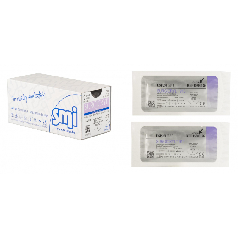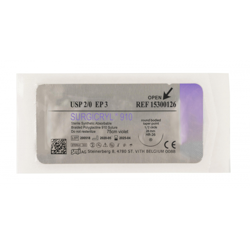 Сургикрил 910. Синтетический рассасывающийся плетеный мультифиламент с покрытием. Состав: полиглактин 910, кополимер, состоящий на 90% из гликолидной кислоты и на 10% из L-лактида. Покрытие: поли-гликолид-ко-L-лактид и стеарат кальция (<1%). Прочность (срок сдерживания тканей): 21 день. Срок полного рассасывания нити: 56-70 дней.