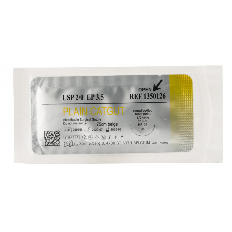 Кетгут простой. Крученный полифиламент с внешним видом монофиламента. Тип материала (химическая структура): соединительная ткань серозного слоя кишечника крупного рогатого скота, из стран, где не существует опасности заражения КГЭ (коровья губчатая энцефалопатия). Прочность (срок сдерживания тканей): 7 дней. Срок рассасывания нити: 63 дней. Покрытие: Отсутствует.