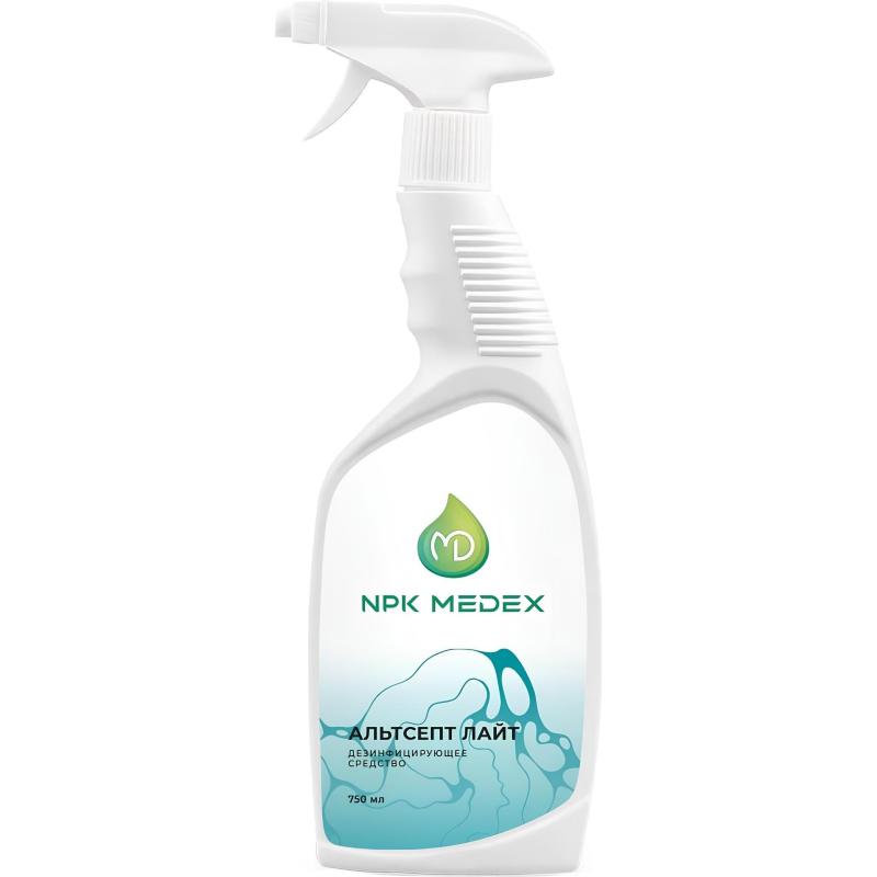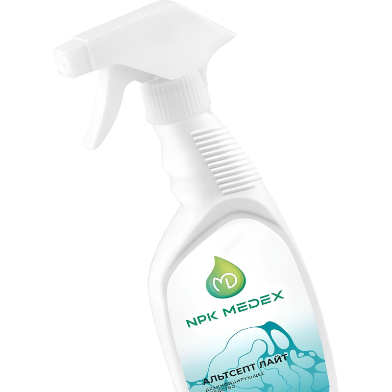 Дезинфицирующий спрей Альтсепт ?Лайт? 750 мл. Действующие вещества: спирт изопропиловый 26%, ЧАС, Амин, Гуанидин. рН - 7. Микробиология: вирусы (ECHO 6, полиомиелит), М. Терра, ВБИ, грибковые инфекции. Универсальное средство (готовый к применению раствор) для обработки рук, перчаток, поверхностей (в том числе загрязненных биологическими субстратами), инструментов и эндоскопов, датчиков УЗИ, кувезов, оптических приборов и оборудования, бактерицидных ламп, различных насадок, в том числе стоматологических наконечников, термометров.