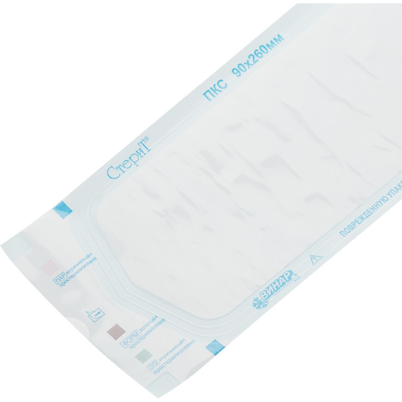 Пакет для стерилизации комбинированный Винар 90 x 260 мм самоклеящийся (100 штук в упаковке). Пакет комбинированный предназначен для упаковывания медицинских изделий, подлежащих стерилизации (паровой, газовой (этиленоксидной и пароформальдегидной) и радиационной), с целью обеспечения их стерильности после стерилизации при хранении и транспортировании до использования по назначению. Пакет изготовлен из белой бумаги и прозрачной лавсановой пленки, с химическими индикаторами 1 класса, позволяющими отличать пакеты, подвергавшиеся стерилизации, от не подвергавшихся. На выступающей части бумажной стороны (клапане) нанесен липкий слой, защищенный антиадгезивной бумагой. Размер пакета: ширина - 90+5 мм, длина - 260+5 мм. В упаковке - 100 штук. Срок годности не менее 7 лет. Срок сохранения стерильности не менее 5 лет. Остаточный срок годности не менее 36 месяцев на момент поставки. Продукция имеет регистрационное удостоверение как медицинское изделие.