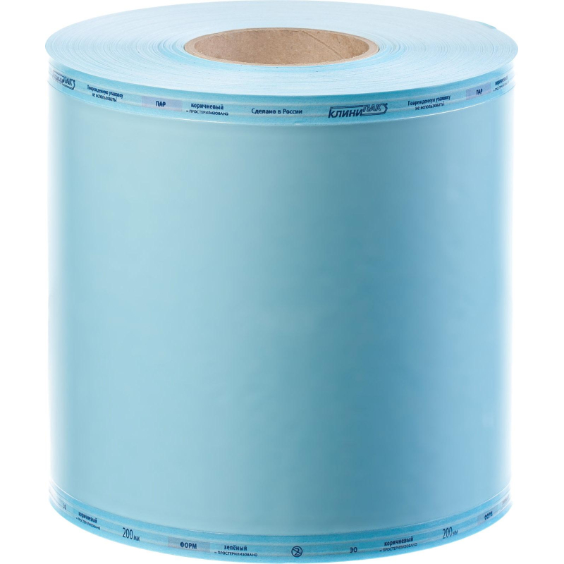 Рулон для стерилизации комбинированный Клинипак для паровой/газовой стерилизации 150 мм x 200 м. Рулоны плоские ?Клинипак? представляют собой комбинированную упаковку различной ширины, состоящую из синтетической многослойной пленки и бумаги плотностью 60 либо 70 г/кв.м, и предназначенную для упаковывания небольших по толщине изделий. Метод стерилизации - паровой, газовый (формальдегид, окись этилена). Три индикатора стерилизации 1 класса, размер и название упаковки, ссылка на соответствие международным нормам и дополнительная информация расположены в зоне заводского термошва между пленкой и бумагой на лицевой стороне вне зоны загрузки инструментов. Срок хранения изделий, запечатанных с помощью термосварочного аппарата и простерилизованных в комбинированной упаковке (в том числе в пакетах, изготовленных из рулонов), составляет 5 лет.