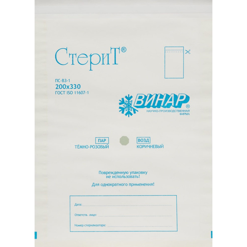 Пакет для стерилизации Винар для паровой/воздушной стерилизации 200 x 330 мм самоклеящийся (100 штук в упаковке). Пакеты ?СтериТ? изготовлены из белой влагопрочной бумаги ВП-М-70, представляют собой прямоугольный конверт, имеющий не менее трех клеевых швов, с нанесенным на выступающей части обратной стороны пакета (клапане) липким слоем, защищенным антиадгезивной бумагой. Пакеты предназначены для упаковывания медицинских изделий, подлежащих стерилизации паровым, газовым, радиационным или воздушным методами, с целью сохранения стерильности этих изделий после стерилизации в одинарной упаковке не менее 50 суток, в двойной упаковке - не менее 60 суток. Пакеты должны относится к медицинским изделиям не выше класса 1 по ГОСТ Р 51609, пройти испытания на аттестованном оборудовании и иметь соответствующий паспорт на каждую партию, а на лицевую сторону пакета должен быть нанесен химический индикатор контроля парового и воздушного метода стерилизации, соответствующий классу 1 по классификации ГОСТ ISO 11140-1-2011. Хранение осуществлять в отапливаемом помещении по п.1 ГОСТ 15150. Остаточный срок годности на момент поставки - не менее 80%. Срок годности при соблюдении условий хранения должен быть не менее 36 месяцев. Размер пакета: ширина 200 мм, длина 330 мм. Количество в упаковке: 100 шт.