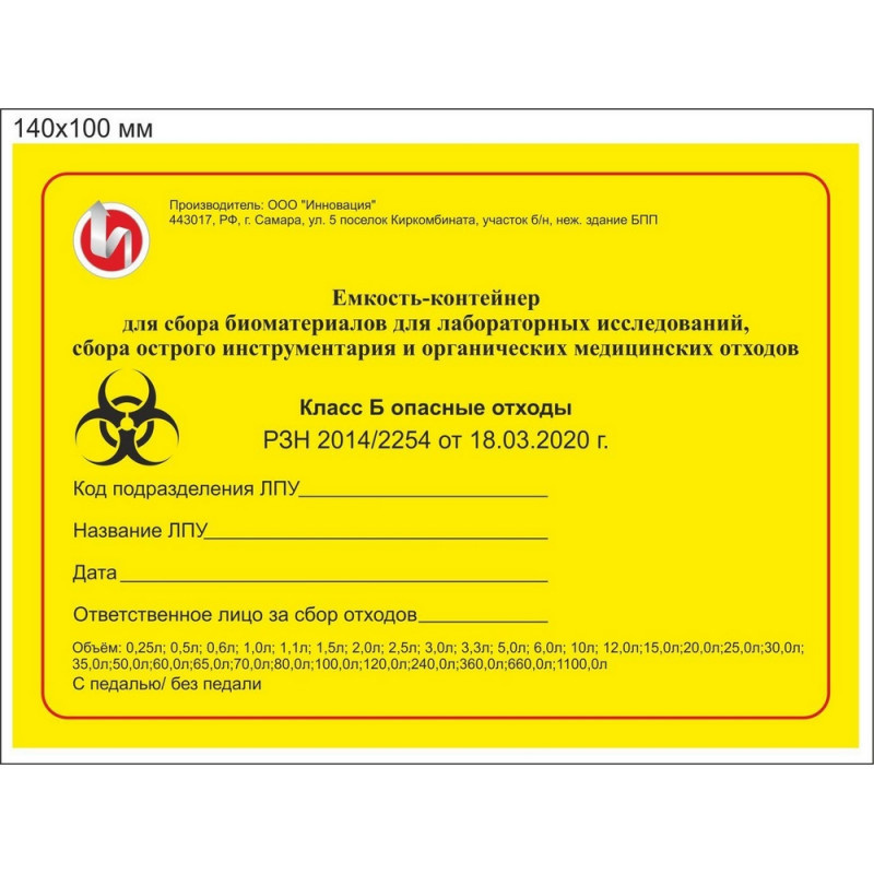 Бак для медицинских отходов СЗПИ класса Б желтое 20 л (10 штук в упаковке). Многоразовый бак с крышкой применяется для сбора медицинских отходов. Рекомендуется использовать подходящий по объему пакет соответствующего класса. Бак для отходов изготавливается из пластика и комплектуется крышкой и наклейкой. Баки и ведра для медицинских отходов рекомендованы для помещений на территории лечебно-профилактических учреждений в местах первичного сбора отходов. Количество в упаковке: 10 штук.