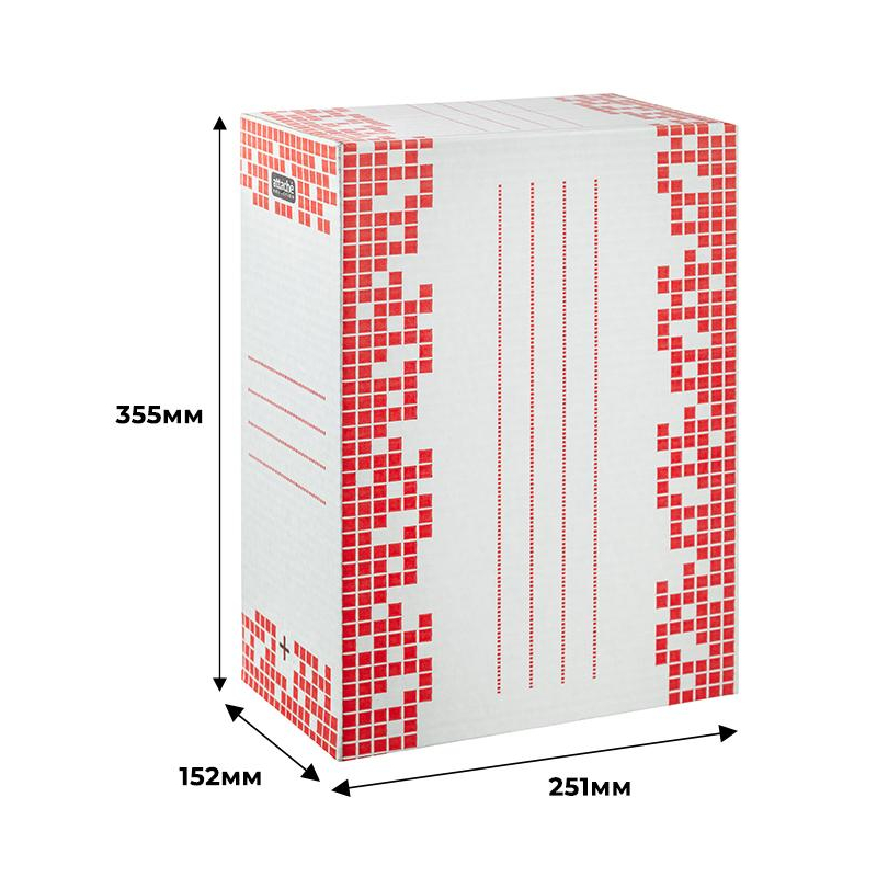 Короб архивный Attache Selection изготовлен из гофрокартона Т24 белого цвета. Предназначен для среднесрочного хранения и архивации документов.Возможно вертикальное и горизонтальное размещение, на стеллажах или в архивных коробах. Удобное кольцо на корешке для захвата. На боковых сторонах имеются поля для надписей.Ширина корешка составляет 150 мм. Короб вмещает 1500 листов стандартной плотности. Внешний размер: 251х152х355 мм. Внутренний размер: 242х145х340 мм.Поставляется в разобранном виде.Гофрокартон - экологически чистый и пригодный для переработки материал.ARX Technology - это гарантия высокого качества продукции, достигаемого за счет использования передовых технологий и материалов, разработки уникальных конструктивных решений и контроля качества на каждом из этапов производства.