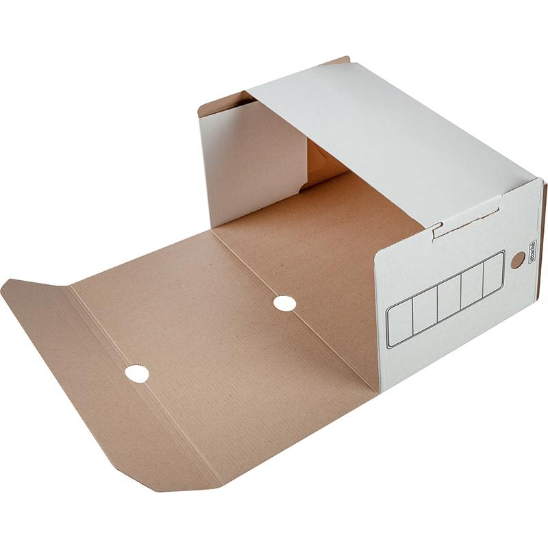 Короб архивный Attache изготовлен из гофрокартона Т21 белого цвета. Предназначен для краткосрочного хранения документации.Возможно вертикальное и горизонтальное размещение, на стеллажах или в архивных коробах. Легкая сборка. Крышка короба фиксируется вырубным клапаном. На корешке и боковых сторонах есть поля для надписей.Ширина корешка составляет 200 мм. Короб вмещает 1900 листов стандартной плотности. Внешний размер: 256x200x320 мм. Внутренний размер: 252x197x316 мм.Поставляется в разобранном виде. В упаковке 5 штук.Гофрокартон - экологически чистый и пригодный для переработки материал.