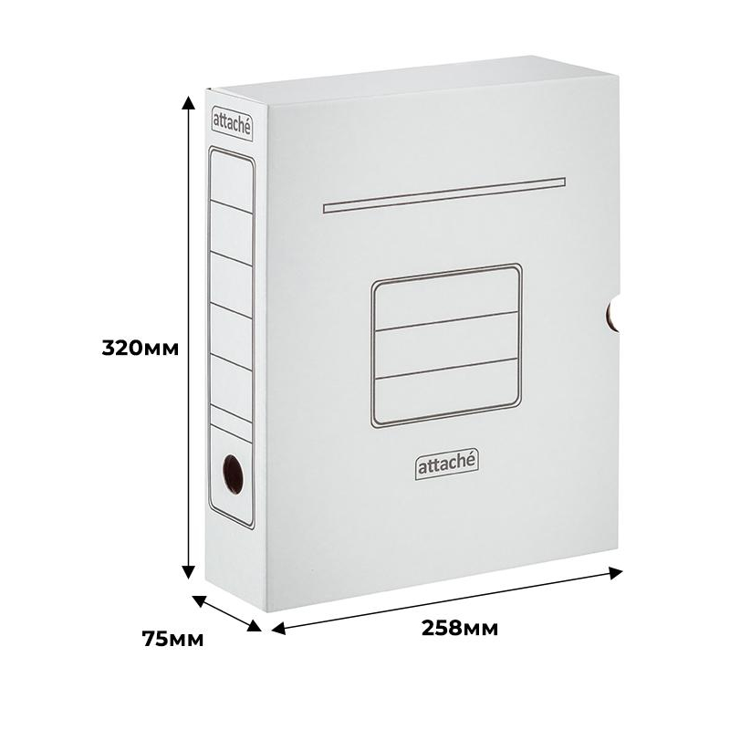 Короб архивный Attache изготовлен из гофрокартона Т23 (профиль В) бежевого цвета. Предназначен для краткосрочного хранения документации.Возможно вертикальное и горизонтальное размещение, на стеллажах или в архивных коробах. Легкая сборка. Крышка короба фиксируется вырубным креплением. На корешке и боковых сторонах есть поля для надписей.Ширина корешка - 75 мм. Короб архивный Attache вмещает до 750 листов стандартной плотности. Внешний размер изделия - 258x75x320 мм, внутренний размер изделия - 256x75x318 мм. Поставляется в разобранном виде. В упаковке - 5 штук.Поставляется в разобранном виде.Гофрокартон - экологически чистый и пригодный для переработки материал.