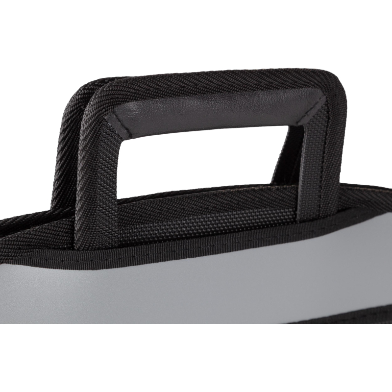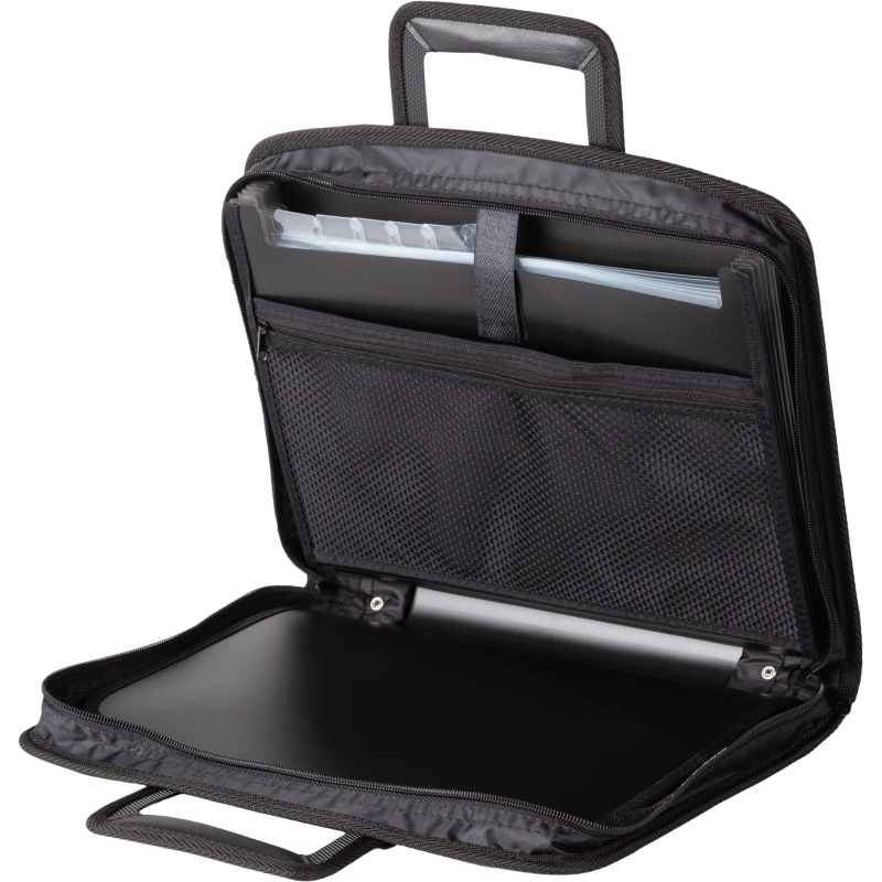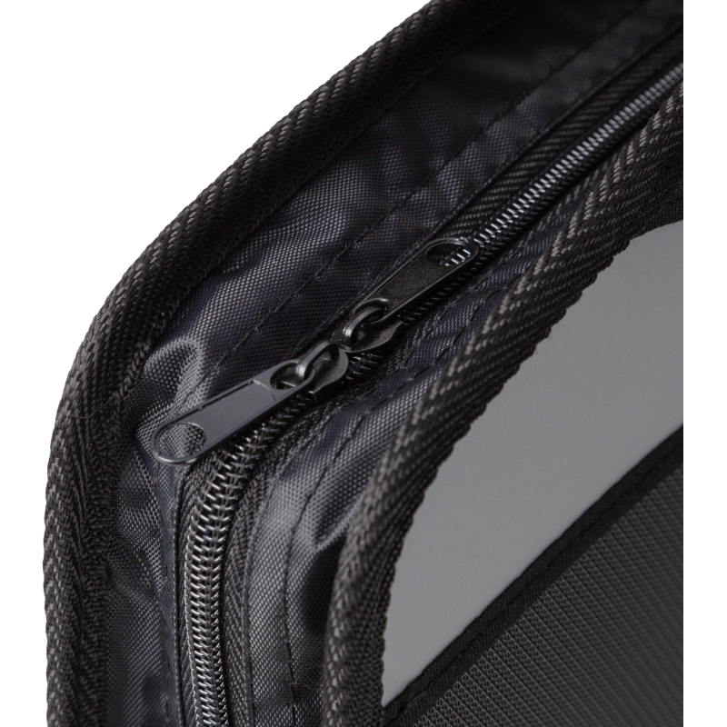 Изготовлена из прочного пластика. Имеет пять отделений и отделение для мелочей. Застегивается на молнию.