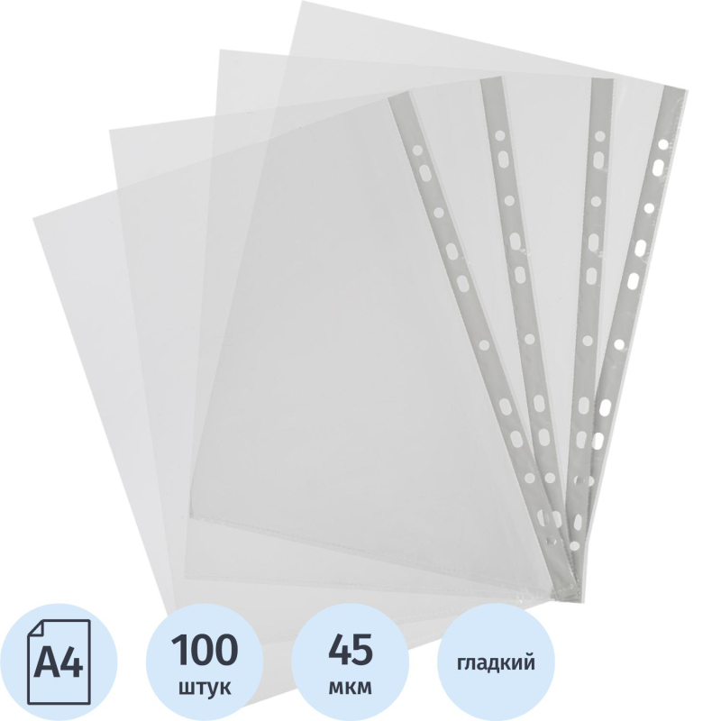 Файл-вкладыш Attache Economy формата А4, предназначенный для хранения и защиты печатных документов. Поверхность прозрачная, гладкая. Изготовлен из полипропиленовой пленки (толщина 45 мкм). Внешний размер: 233+/-2x305+/-2 мм, внутренний размер: 217+/-2x303+/-2 мм. Боковая перфорация подходит для разных типов скоросшивателей. В упаковке содержится 100 файлов. Каждый файл-вкладыш вмещает около 50 листов стандартной плотности. Стоимость указана за упаковку. Ultra пленка, выдерживает до 45 мкм. Товар относится к ценовому сегменту "суперэконом". Имеет упрощенные характеристики и более простую упаковку. Отвечает основным требованиям потребления.Законодательные и технические документы: