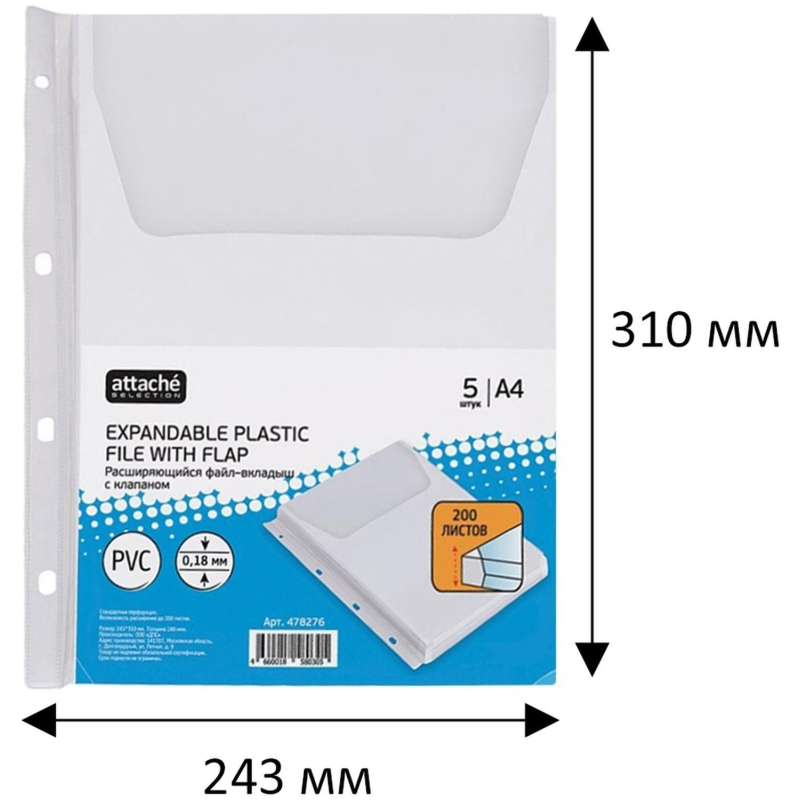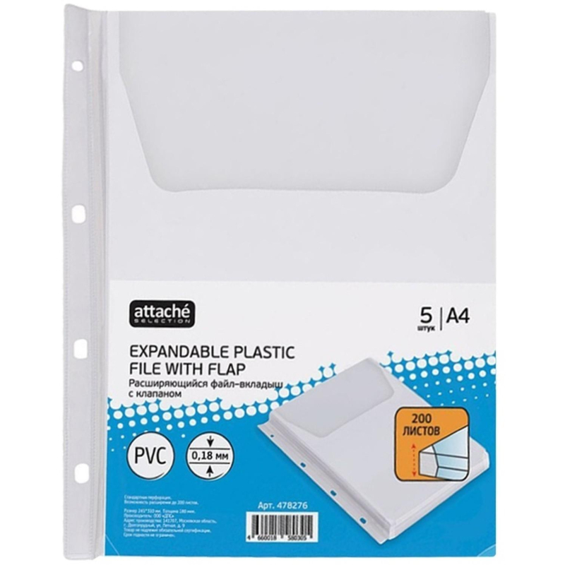 Материал:ПВХ плотность 180 мкм перфорация 4 отверстия, подходит для всех видов папок Размер: 245*310 мм в упаковке 5 шт.
