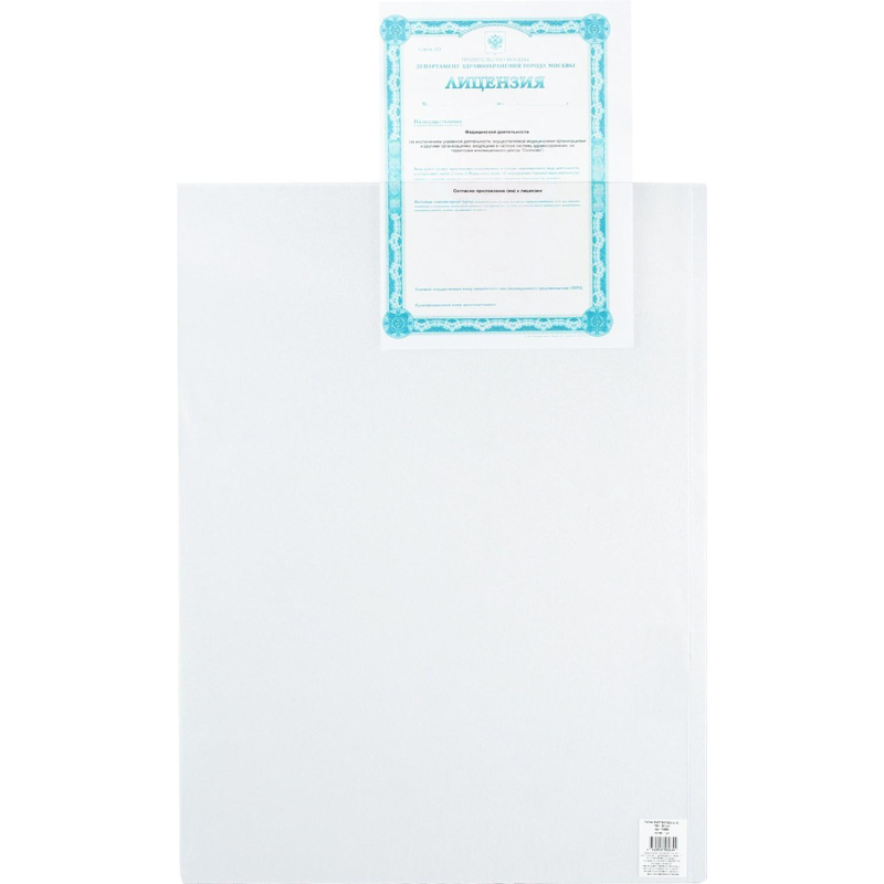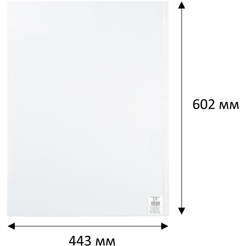 Файл под А2 формат, без отверстий. Габаритный размер 443х602 мм. Сделан из гладкой прозрачной пленки 180 мкм