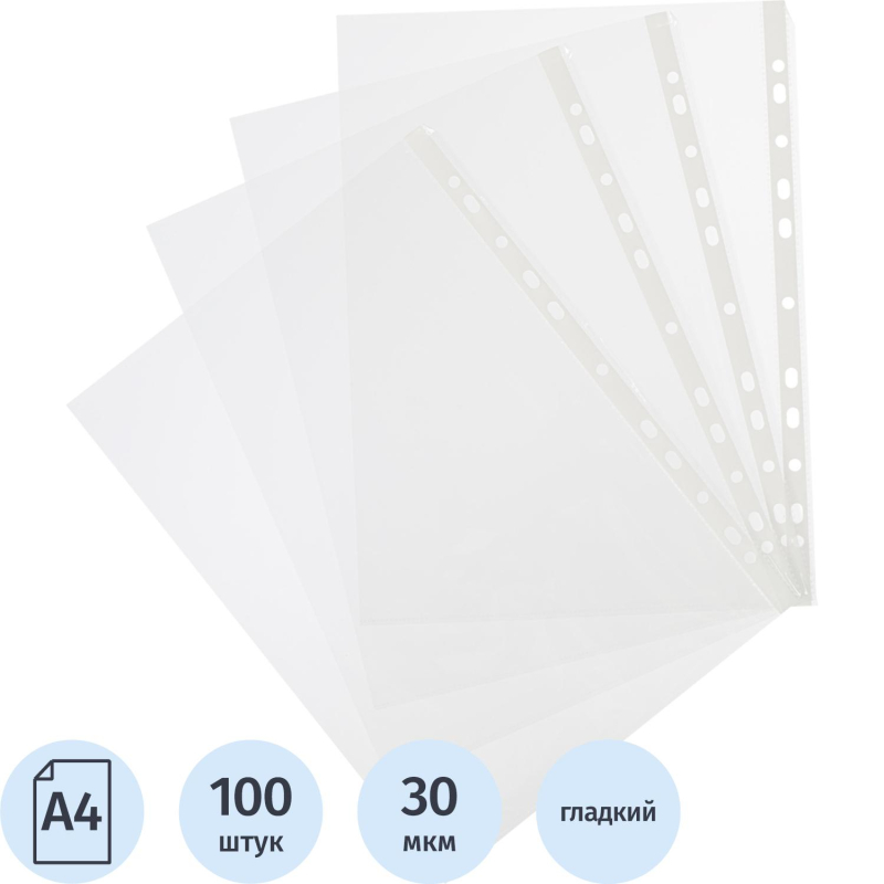 Файл-вкладыш Attache Economy формата А4, предназначенный для хранения и защиты печатных документов. Поверхность глянцевая, прозрачная. Изготовлен из сверхтонкой полипропиленовой пленки (толщина 30 мкм). Внешний размер: 233+2x305+2 мм, внутренний размер: 217+2x303+2 мм. Боковая перфорация подходит для разных типов скоросшивателей. В упаковке содержится 100 файлов. Каждый файл-вкладыш вмещает около 40 листов стандартной плотности. Стоимость указана за упаковку. Ultra пленка, выдерживает до 30 мкм. Товар относится к ценовому сегменту "суперэконом". Имеет упрощенные характеристики и более простую упаковку. Отвечает основным требованиям потребления.