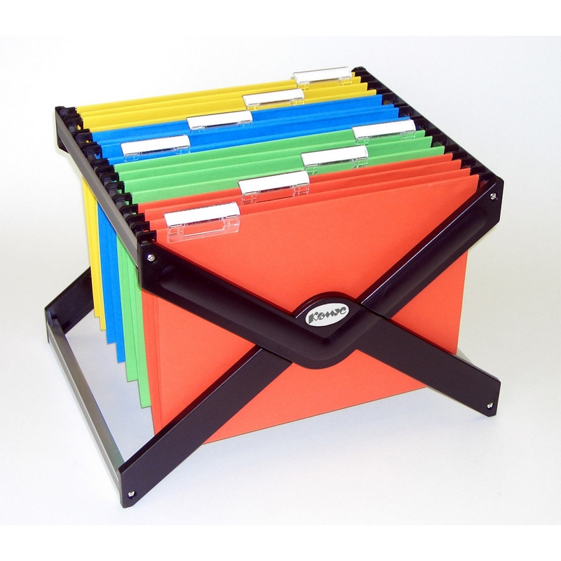 Подставка для подвесных папок ?Комус? выполнена из металла и пластика черного цвета. Размер - (ВxДxШ) - 275x410x320 мм. Компактно складывается. Вмещает до 25 подвесных папок формата А4 или формата Foolscap (240x370 мм). Папки в комплект не входят. Для смены формата достаточно перевернуть подставку. Подходит для хранения документов частого использования.