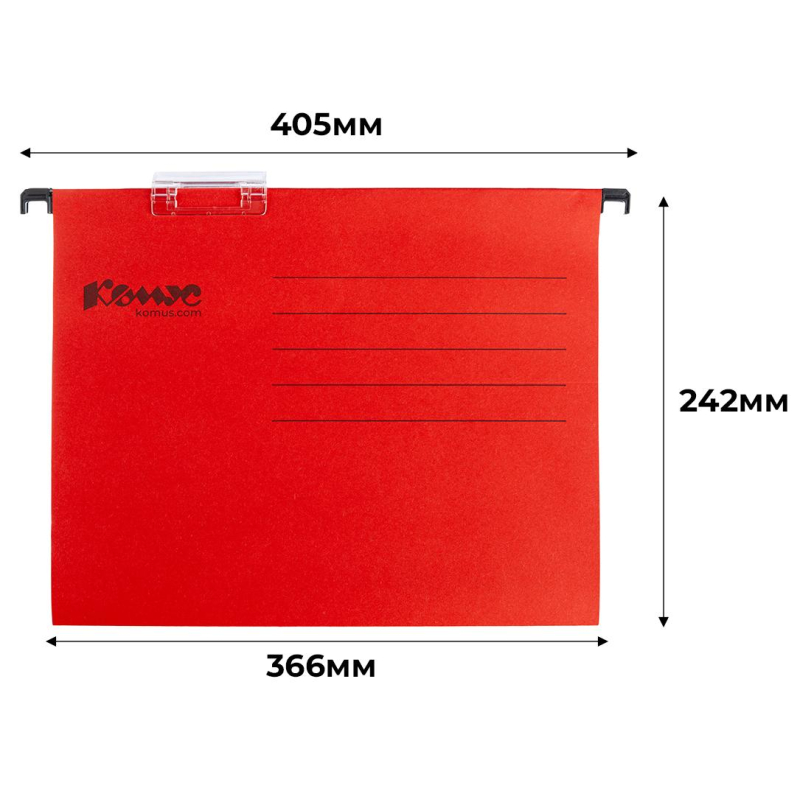 Предназначены для организации хранения документов в подвешиваемом положении. Изготовлены из картона 224 г/кв.м. Металлические крючки в пластиковом корпусе. Передвижной табулятор из жесткого пластика с бумажной вставкой для маркировки. Размер табулятора 7x1 см. Размер бумажного вкладыша 6.5x1 см. Размер папки, включая крючки 405х242 мм; без учета крючков 366х242 мм. Формат Foolscap. В упаковке 25 папок и 25 табуляторов Цвет красный. Форма папки V-образная. Вместимость 200 листов (максимальный выдерживаемый вес 2 кг). Скоросшиватель для подшивки документов - отсутствует. Рекомендуется хранение папок в тележке, картотеке и других системах хранения.