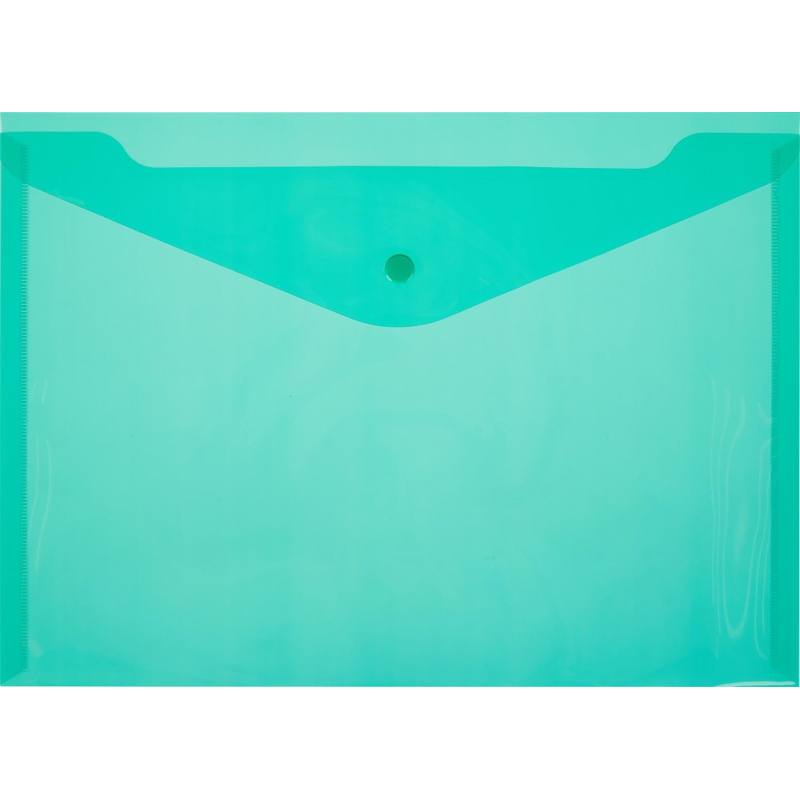Папка-конверт формата А4 изготовлена из прозрачного пластика толщиной 0,18 мм зеленого цвета. Внешний размер составляет 236x330 мм. Закрывается на кнопку. Удобна для хранения и переноски документов, предотвращает их смятие и загрязнение. Вмещает до 120 листов стандартной плотности.