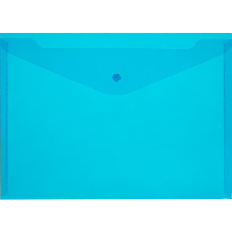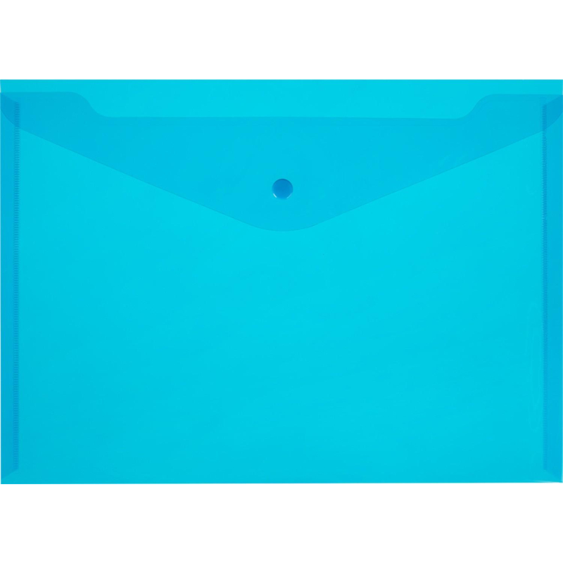 Папка-конверт формата А4 изготовлена из прозрачного полипропилена синего цвета. Закрывается на кнопку. Удобна для хранения и переноски документов, предотвращает их смятие и загрязнение.