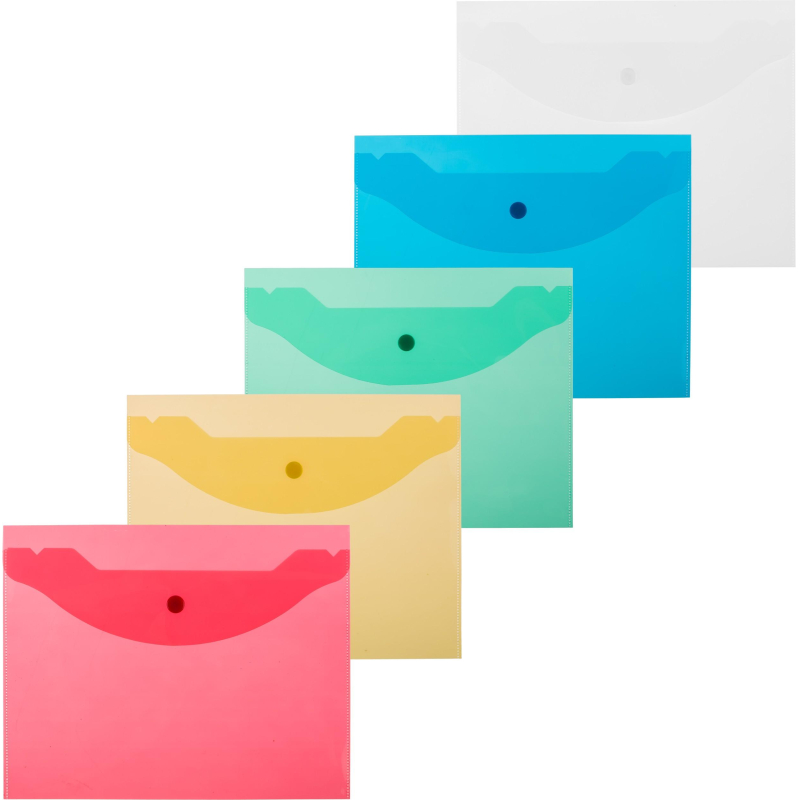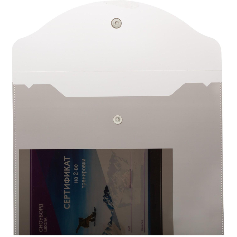 Папка-конверт размером формата А5 изготовлена из прозрачного пластика толщиной 0,18 мм. Закрывается на кнопку. Вмещает до 120 листов. Удобна для хранения и переноски документов, предотвращает их смятие и загрязнение. Размер: 190x240 мм.