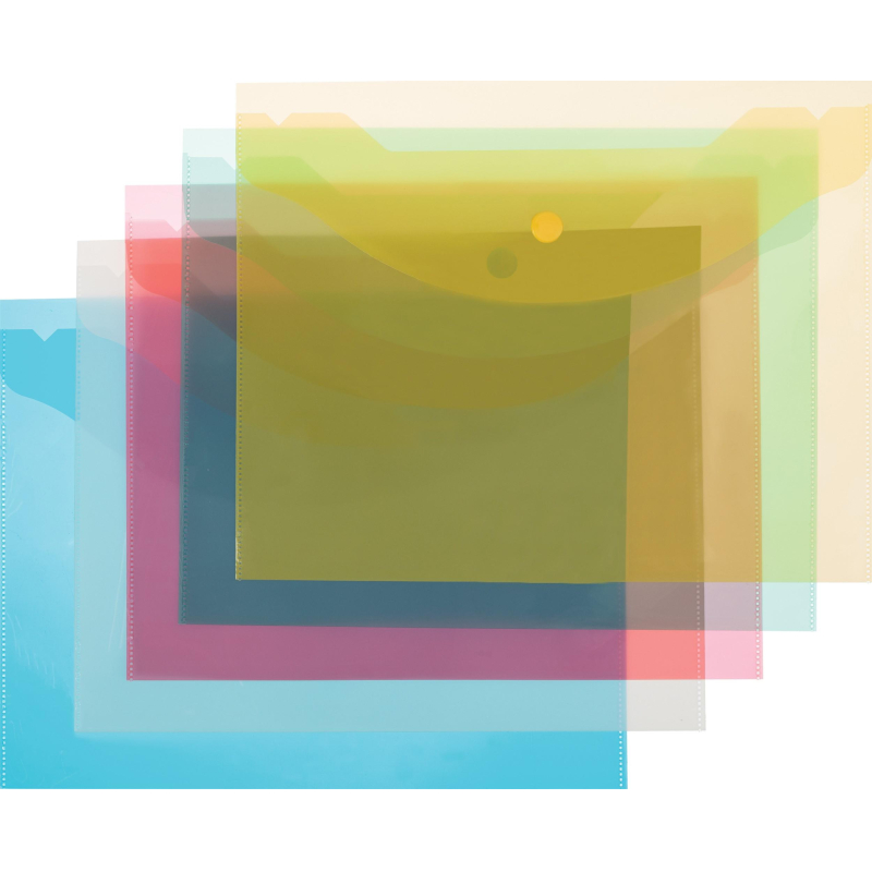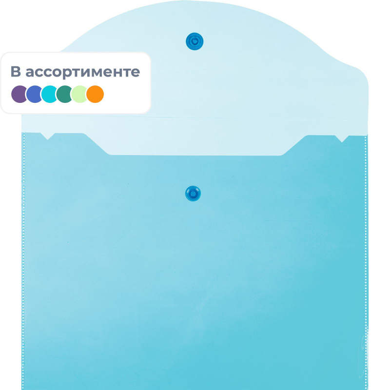 Папка-конверт формата А5 изготовлена из прозрачного полипропилена. Закрывается на кнопку. Удобна для хранения и переноски документов, предотвращает их смятие и загрязнение. Вмещает до 80 листов.