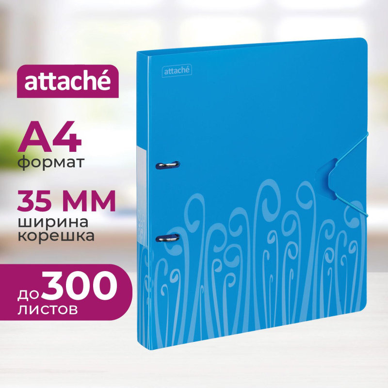 Папка на кольцах рекомендуются как для временного, так и длительного хранения, систематизации, архивирования документов. Такие папки используются в работе офисными сотрудниками различных специальностей, направлений, должностей. Можно использовать для домашних документов. Папка на двух кольцах Attache Fantasy изготовлена из высококачественного пластика голубого цвета. Формат А4, оригинальный стильный дизайн. Надежно закрывается на резинку. Прорези на внешней крышке папки удерживают ее закрытой даже при большом количестве документов. Ширина корешка составляет 35 мм, диаметр кольца - 30 мм. Папка на кольцах вмещает до 300 листов стандартной плотности.