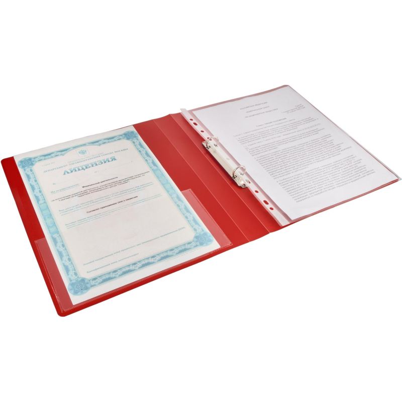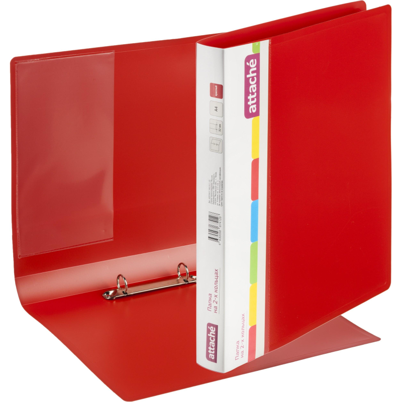 Папка на кольцах рекомендуются как для временного, так и длительного хранения, систематизации, архивирования документов. Такие папки используются в работе офисными сотрудниками различных специальностей, направлений, должностей. Можно использовать для домашних документов. Папка на двух кольцах Attache изготовлена из листового полипропилена толщиной 0,7 мм красного цвета. Формат А4. Снабжена механизмом на двух O-кольцах. Диаметр кольца - 25 мм. На внутренней стороне обложки есть прозрачный карман для документов. Корешок шириной 32 мм имеет карман для сменной этикетки. Папка на кольцах вмещает до 200 листов стандартной плотности.