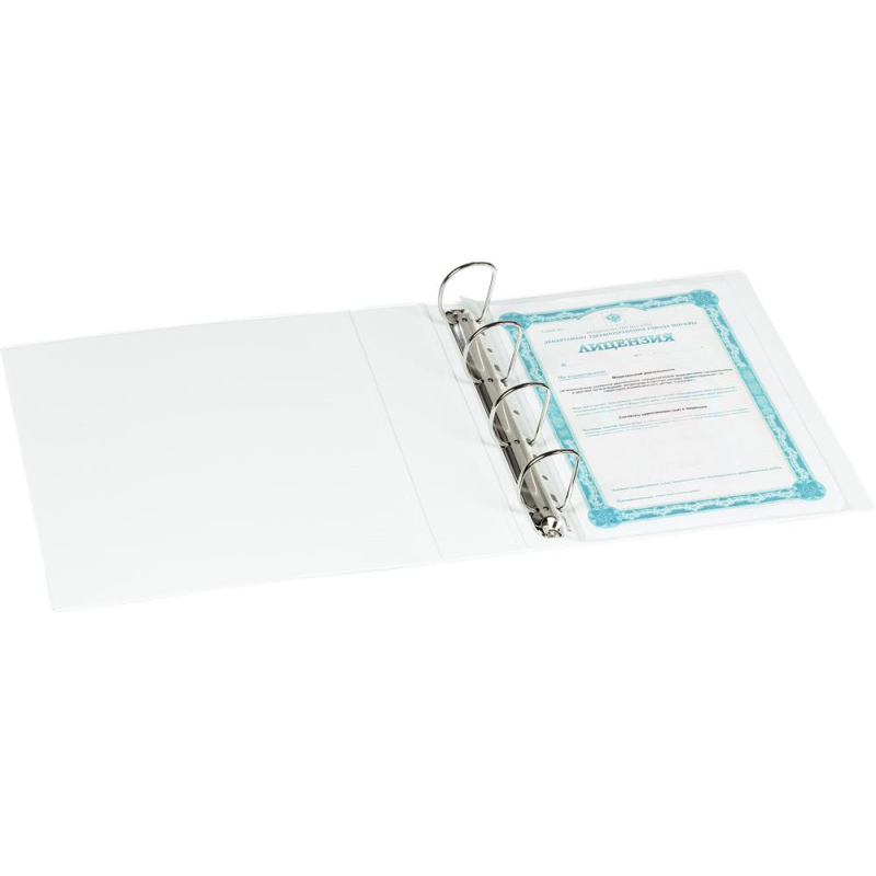 Папка на четырех кольцах Attache Панорама. Цвет: белый. Формат А4. Изготовлена из плотного картона, с внешней и внутренней стороны покрыта пластиком белого цвета. Оснащена механизмом на четырех D-кольцах диаметром 50 мм. Внутренняя высота кольца 50 мм. Корешок шириной 75 мм имеет прозрачный карман для сменной этикетки. На лицевой стороне папки для презентаций расположен карман А4 для размещения титульного листа и прочей информации.