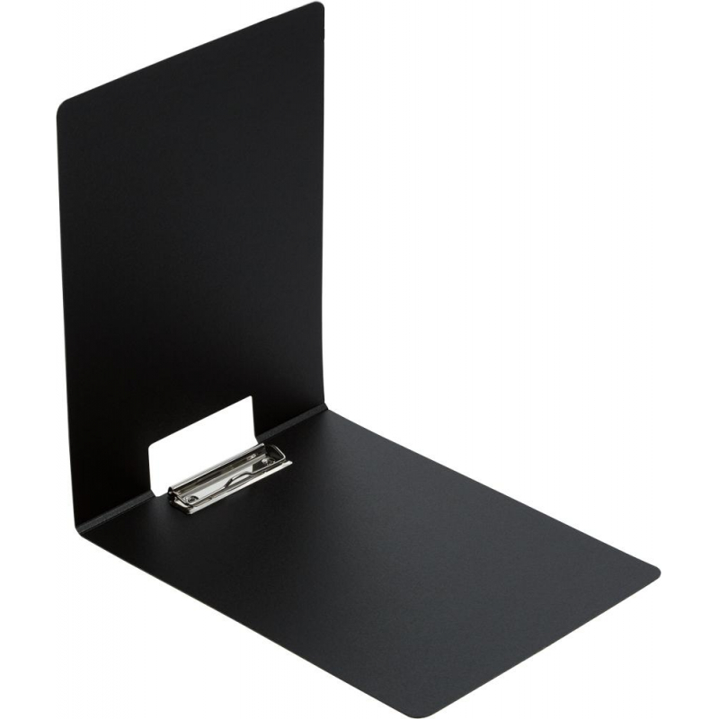 Планшет формата А4 (240x320 мм) с откидной крышкой изготовлен из полифома (легкого износостойкого пластика). Толщина пластика - 2 мм. Стильный двухцветный дизайн: лиловый снаружи, черный внутри. Крышку возможно откидывать полностью (раскрывать планшет на 360 градусов). Позволяет комфортно работать с документами на весу. Надежный прижим удерживает до 75 листов стандартной плотности.
