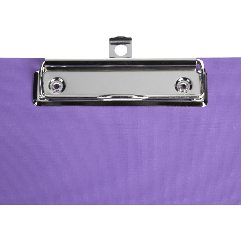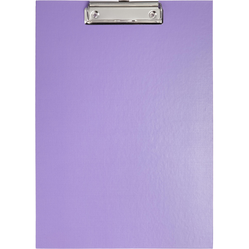 Планшет для бумаг Комус формата А4 изготовлен из плотного картона, покрытого пластиком (бумвинилом) фиолетового цвета. Позволяет комфортно работать с документами на весу. Металлический прижим надежно удерживает листы и файлы.