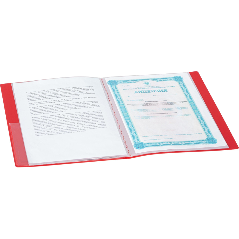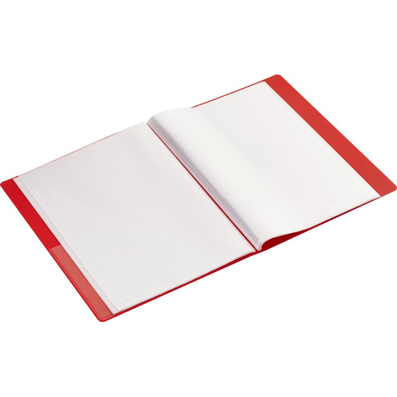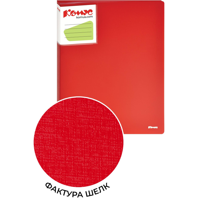 Папка с файлами Комус из коллекции 'Шелк' выполнена из пластика красного цвета толщиной 0,7 мм. Имеет 40 прозрачных файлов для хранения и демонстрации документов. На корешке предусмотрен прозрачный карман с вкладышем для маркировки, на внутренней стороне створки - дополнительный карман для записок, сим-карт, компакт-дисков. Файловая папка вмещает до 80 листов формата А4. В рамках ребрендинга производится перевод дизайна данного артикула с сохранением всех потребительских характеристик товара. На переходный период допускается поставка данной продукции в двух вариантах дизайна.