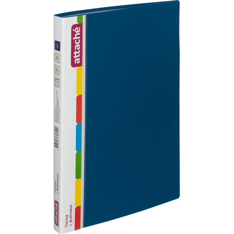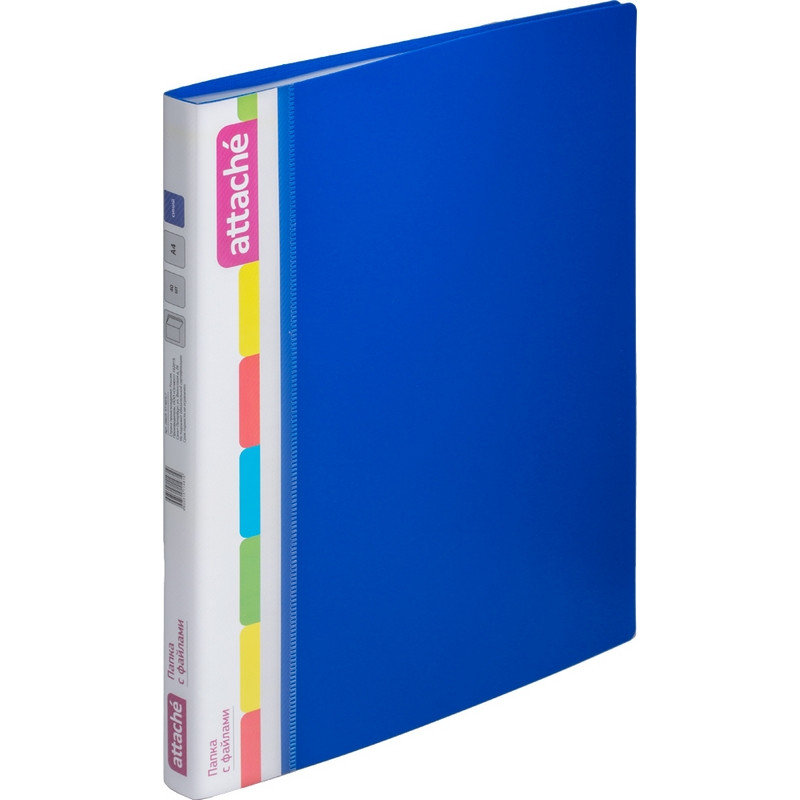Папка с файлами Attache предназначена для хранения материалов и документов формата А4, требующих упорядоченности и наглядного обзора: отчетов, презентаций, коммерческих и персональных портфолио. Изготовлена из пластика толщиной 0,7 мм синего цвета, имеет 40 прозрачных вкладышей, а также карман на корешке для сменной этикетки. Вмещает до 80 листов стандартной плотности. Преимуществом файловой папки является надежная сохранность документов в отличном состоянии без предварительной перфорации. Плотность файлов 25 мкм.