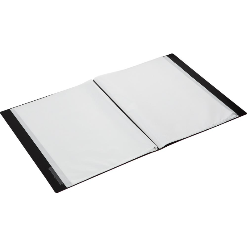 Папка с файлами Комус формата А4 изготовлена из полипропилена толщиной 0,5 мм двух цветов: сиреневого (внешняя поверхность) и черного (внутренняя поверхность). Имеет 40 несъемных прозрачных вкладышей для удобного хранения и демонстрации документов. В каждом из них можно разместить по два листа. Ширина корешка составляет 20 мм. Файловая папка дополнительно оснащена внутренним карманом для компакт-дисков и визитных карточек. Плотность файлов 30 мкм.