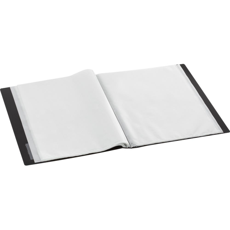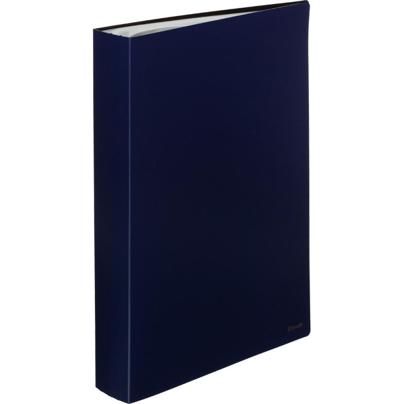 Папка с файлами Комус формата А4 изготовлена из полипропилена толщиной 0,8 мм двух цветов: темно-синего (внешняя поверхность) и черного (внутренняя поверхность). Имеет 60 несъемных прозрачных вкладышей для удобного хранения и демонстрации документов. В каждом из них можно разместить по два листа. Ширина корешка составляет 25 мм. Файловая папка дополнительно оснащена внутренним карманом для компакт-дисков и визитных карточек. Плотность файлов 30 мкм.