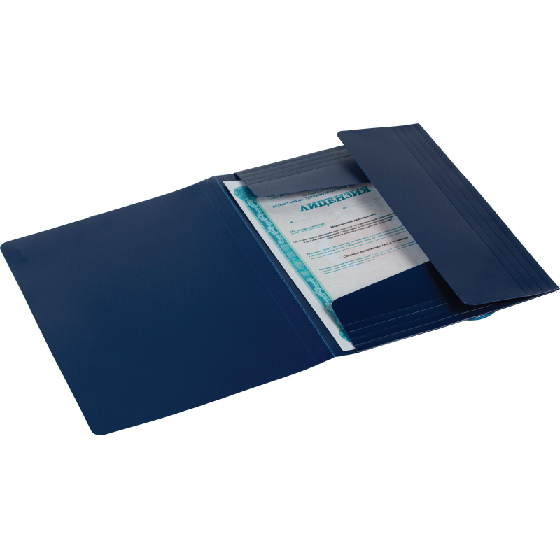 Папка на резинке 'Комус' из коллекции 'Шелк' монохромного синего цвета с эффектной матовой поверхностью. На углах предусмотрены резинки для сохранности документов. Изготовлена из пластика высокого качества, толщиной 0,5 мм. Папка для хранения документов вмещает до 200 листов. Папка поставляется в полиэтиленовой упаковке.