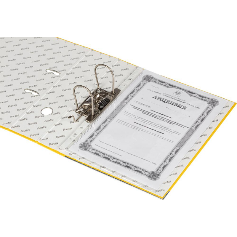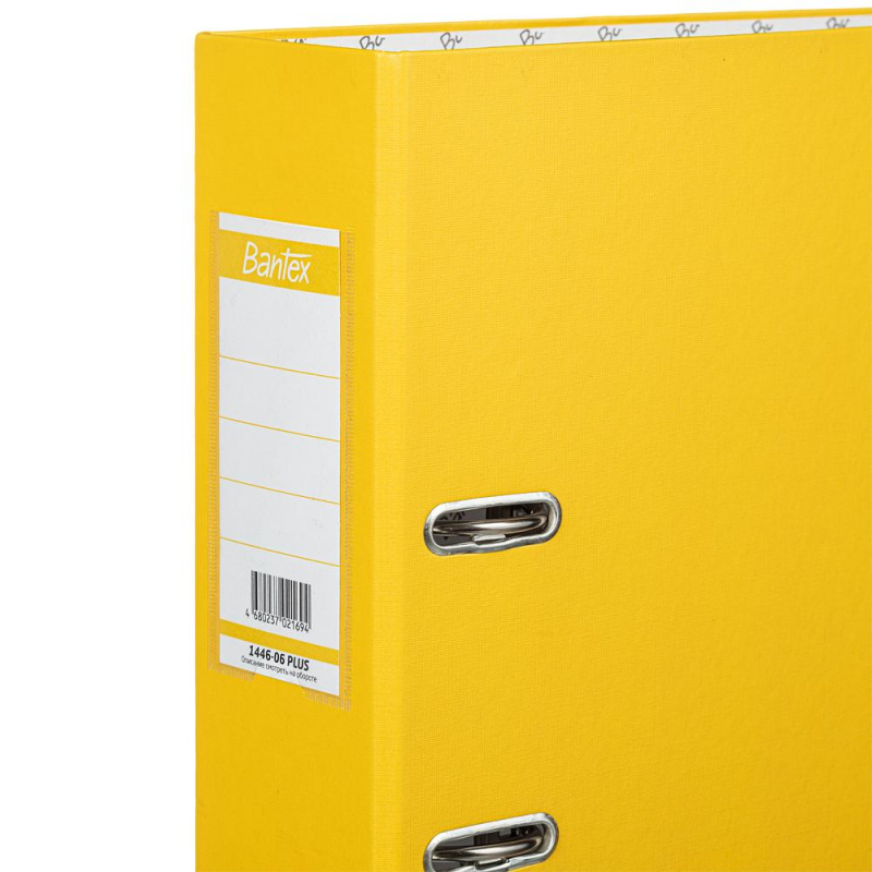 Папка-регистратор Bantex (Attache Selection) из коллекции Economy Plus изготовлена из прочного картона толщиной 1,9 мм, покрытого с внешней стороны желтым бумвинилом, а с внутренней - бумагой с печатью Bantex. Формат А4+, папка ориентирована вертикально. Вмещает до 600 листов стандартной плотности. Оснащена арочным механизмом, произведенным в Чехии. На корешке шириной 80 мм есть карман со сменной этикеткой и круглое кольцо для удобного захвата. Овальные кольца на верхней крышке удерживают папку закрытой даже при большом количестве документов. Нижние края папки защищены металлическим кантом. Цветовая гамма включает 11 цветов. С начала 2024 года прекращено производство всех товаров ТМ Bantex (Хамелин А/С, Дания). Все артикулы продукции бренда Bantex (после реализации остатков, произведенных до 31.12.2023) будут переведены на продукцию бренда Attache Selection, с сохранением всех потребительских характеристик и свойств товаров. На переходный период допускается поставка данной продукции в двух вариантах дизайна упаковки. Законодательные и технические документы