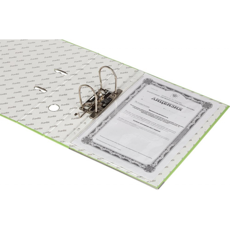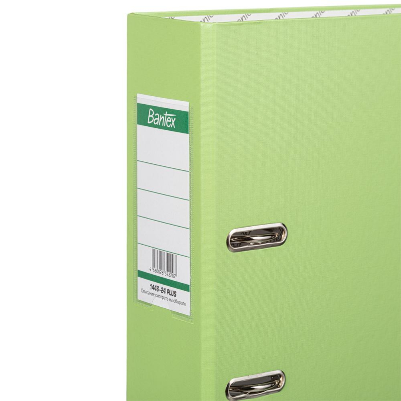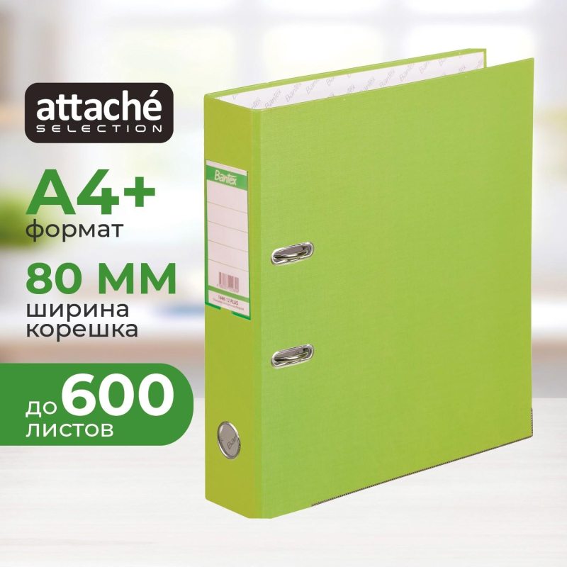 Папка-регистратор Bantex (Attache Selection) из коллекции Economy Plus изготовлена из прочного картона толщиной 1,9 мм, покрытого с внешней стороны салатовым бумвинилом, а с внутренней - бумагой с печатью Bantex. Формат А4+, папка ориентирована вертикально. Вмещает до 600 листов стандартной плотности. Оснащена арочным механизмом, произведенным в Чехии. На корешке шириной 80 мм есть карман со сменной этикеткой и круглое кольцо для удобного захвата. Овальные кольца на верхней крышке удерживают папку закрытой даже при большом количестве документов. Нижние края папки защищены металлическим кантом. Цветовая гамма включает 11 цветов. С начала 2024 года прекращено производство всех товаров ТМ Bantex (Хамелин А/С, Дания). Все артикулы продукции бренда Bantex (после реализации остатков, произведенных до 31.12.2023) будут переведены на продукцию бренда Attache Selection, с сохранением всех потребительских характеристик и свойств товаров. На переходный период допускается поставка данной продукции в двух вариантах дизайна упаковки. Законодательные и технические документы