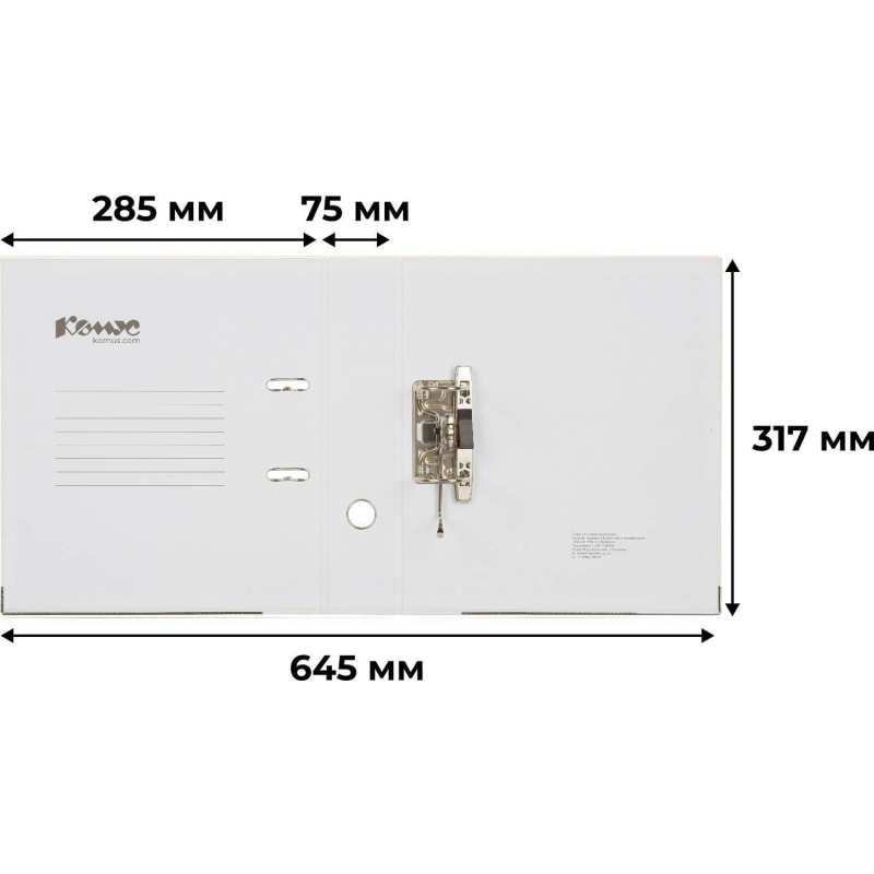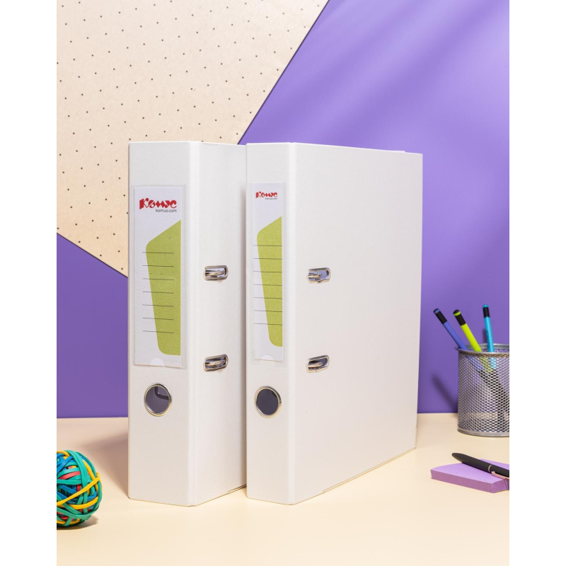 Папка-регистратор 'Комус' из коллекции 'Экономи' с арочным механизмом подходит для хранения большого количества документов формата А4. Изготовлена из плотного картона, который покрыт пластиком (бумвинилом) белого цвета. Нижние края защищены от повреждений металлическим кантом. На корешке шириной 75 мм есть карман со сменной этикеткой и кольцо для захвата. Арочный механизм произведен в Чехии. Папка-регистратор вмещает до 480 листов стандартной плотности. Папки-регистраторы незаменимы в офисах, государственных учреждениях и домах, где необходимо хранить и систематизировать множество документов. Они способствуют поддержанию порядка и обеспечивают легкий доступ к необходимой информации. Папка белого цвета может использоваться в системе цветовой кодировки для упорядочивания документов. Законодательные и технические документы