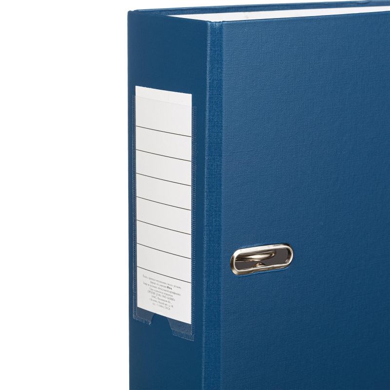 Папка-регистратор Attache Элементари Экономи изготовлена из плотного картона, внешняя сторона покрыта бумвинилом синего цвета, внутренняя - бумагой. На корешке есть карман со сменной этикеткой и кольцо для захвата. Нижние края папки защищены металлическим кантом. Формат А4. Арочный механизм произведен в Чехии. Ширина корешка - 80 мм. Вмещает до 480 листов бумаги стандартной плотности. Такая папка станет незаменимым инструментом для удобного хранения и организации большого количества документов в офисах, государственных учреждениях или дома. Товар относится к ценовому сегменту 'бюджет'. Имеет упрощенные характеристики и более простую упаковку. Отвечает основным требованиям потребления. Законодательные и технические документы