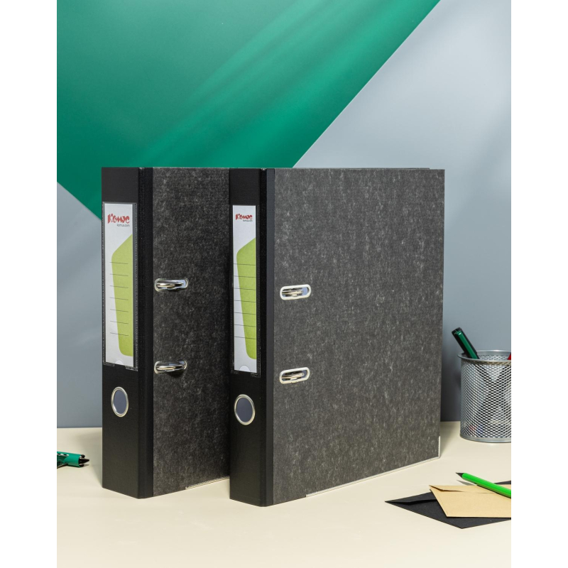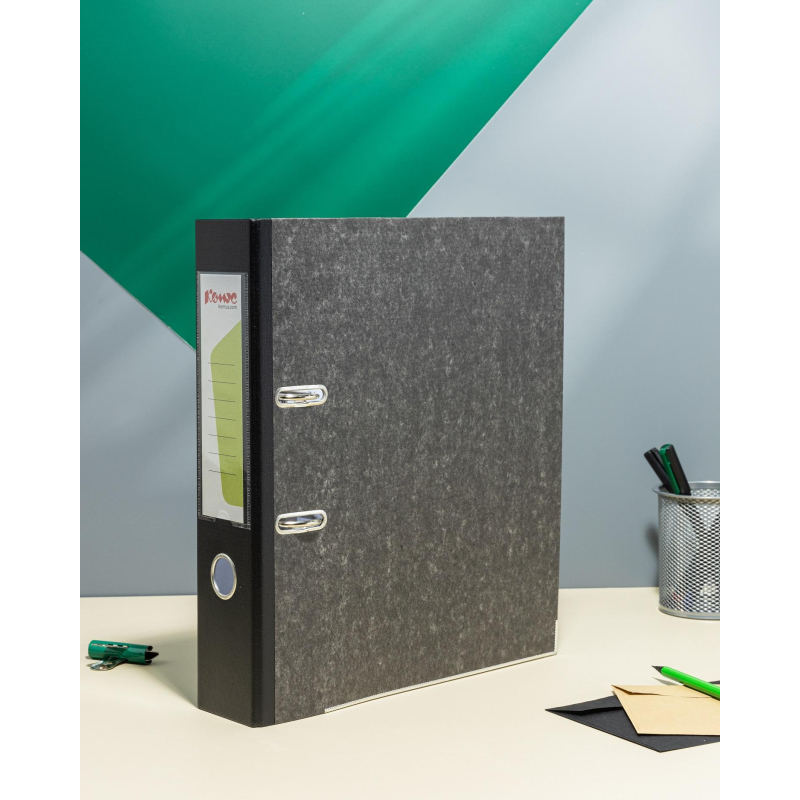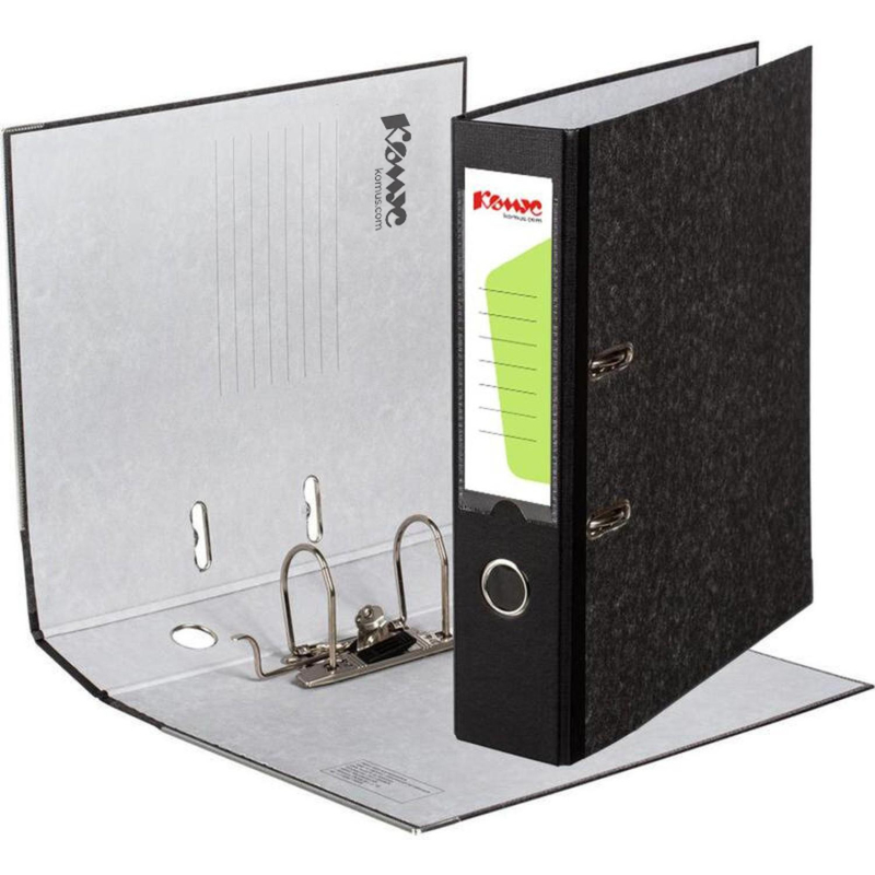 Папка-регистратор 'Комус' с арочным механизмом формата А4 изготовлена из плотного картона, покрытого фактурной бумагой под мрамор, произведенной в Великобритании. Нижние края защищены металлическим кантом. Корешок черного цвета, ширина - 75 мм. Металлический арочный механизм несъемный, произведен в Чехии. Специальные прорези на крышке не дают папке открываться при большом количестве вложенных документов. Есть кольцо для захвата. Папка-регистратор 'Комус' вмещает до 480 листов стандартной плотности. Папка-регистратор незаменима в офисах, государственных учреждениях и дома. Она обеспечит порядок и удобный доступ к необходимым документам. Законодательные и технические документы